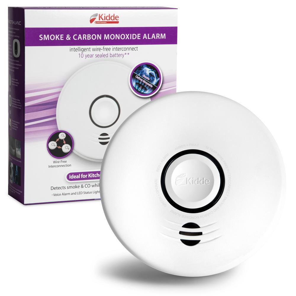This Kidde 10-Year Worry Free Battery Wireless Combination CO and Smoke Alarm features voice alert and wireless interconnectivity. Powered by a 10-year battery that lasts the life of the alarm, no battery installation or replacement is necessary. An end of life warning will alert you when it is time to replace the entire unit. The voice alarm announces the type of hazard detected and indicates when the Smart Hush feature has been activated. This alarm features wire-free interconnectivity with other Kidde 10-Year Wire-Free Interconnect alarms. If 1 unit is triggered, all interconnected alarms will sound. Wire-free interconnectivity allows for easy interconnect setup and eliminates the need for expensive rewiring. You can even install this smoke and carbon monoxide detector in a detached garage or workshop and be alerted by another detector in the house. This alarm is also compatible with the Kidde Smart Bridge app and hub (sold separately), which will send a message to your smart phone, tablet or PC alerting you to a potential threat.