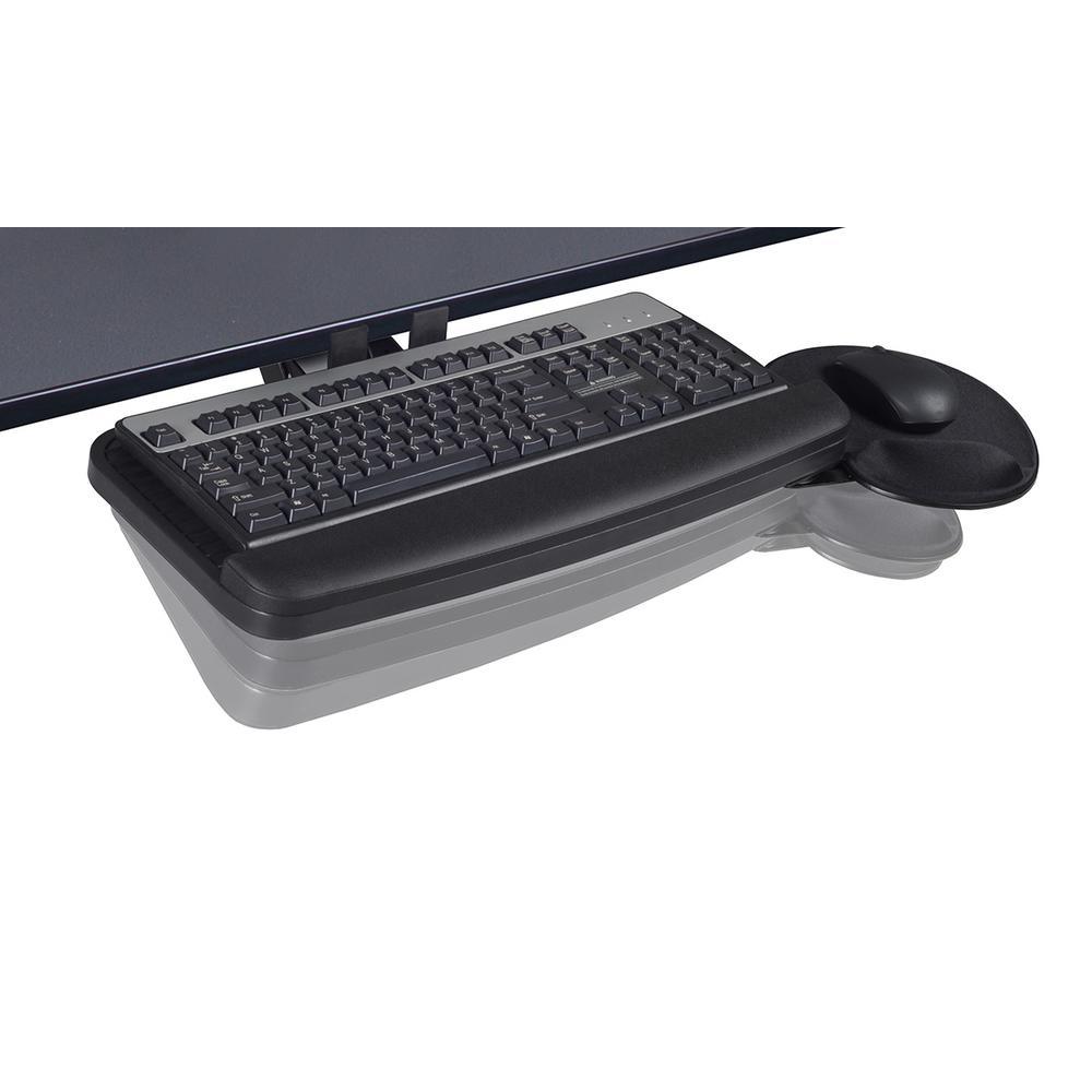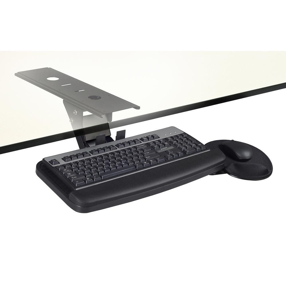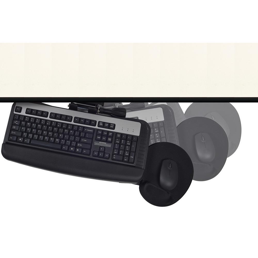 Regency's Right Hand Keyboard Tray is constructed of sturdy steel and features a padded wrist guard on both the keyboard tray and mouse platform. It can be stored away with ease and is adjustable to fit any individual. The tray tilts 45°, swivels 360°, slides out 12 in. and adjusts 5.5 in. height. Backed by a five-year limited manufacturer's warranty.