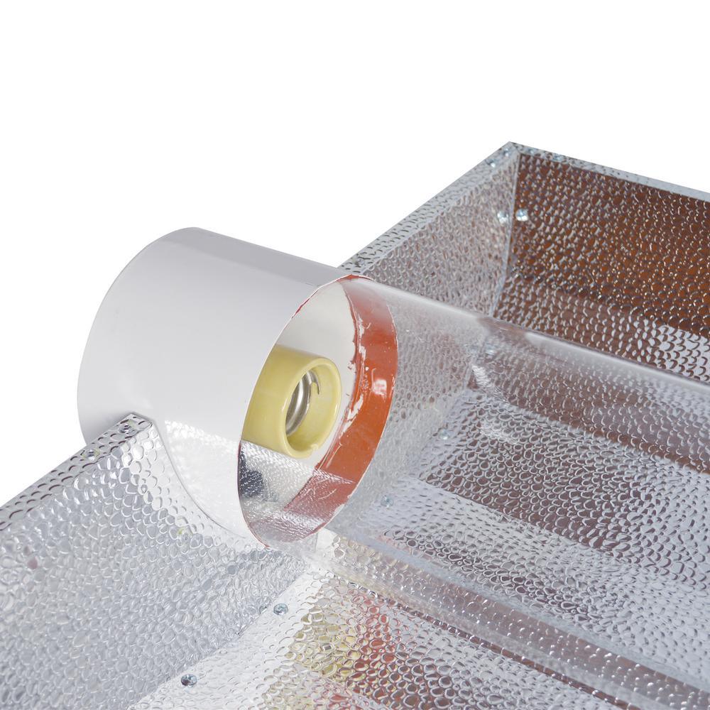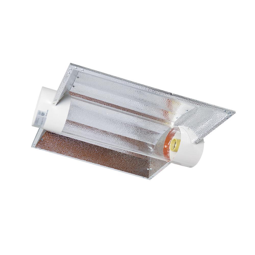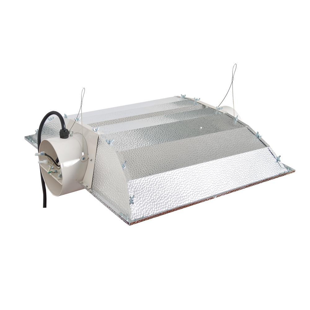Hydro Crunch offers affordable and quality indoor garden equipment for start-up and for seasoned growers. Our reflectors allow your grow lights to be distributed evenly. Comes with pre-installed E39 mogul bulb socket with 15 ft. heavy duty S-type wire plug. It is designed for 250-Watt/400-Watt/600-Watt/1000-Watt MH and HPS bulbs. Enjoy the brand name growing experience without paying for the brand name price. Hydro Crunch 6 in. Cool Tube with XL Wing: Size: 26.4 in. L x 25.2 in. W x 7.1 in. H. Duct Size: 6 in. Socket type: E39 Mogul. Base material: White finish reflective aluminum metal. Lamp compatibility: MH/HPS. Lamp cord: industry standard S-plug pre-installed ceramic socket. Metal hangers included (set of 2). Note: Simple assembly required.