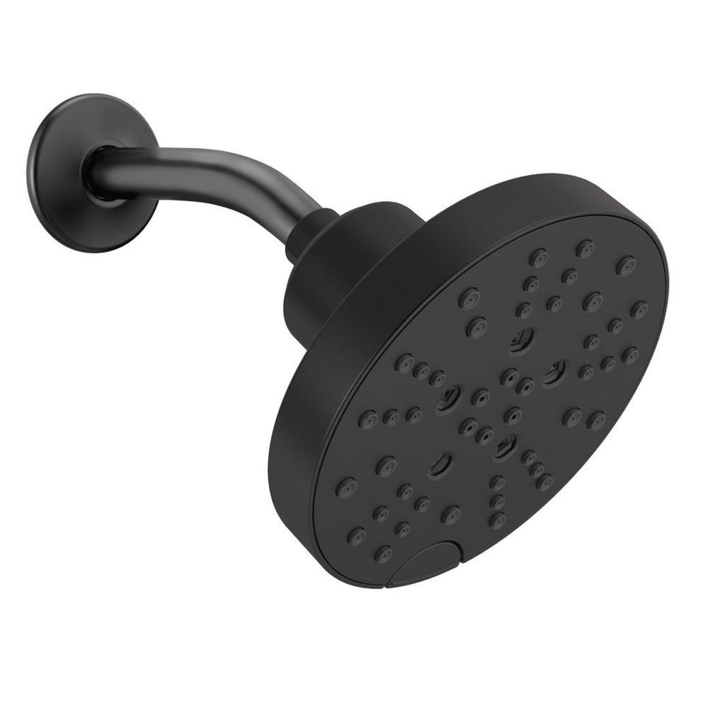 Pivotal 5-Spray 6 in. Single Wall Mount Fixed Rain H2Okinetic Shower Head in Matte Black