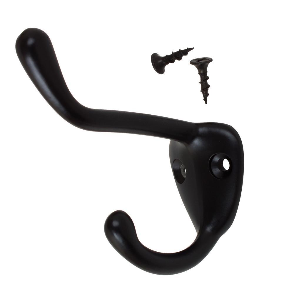3 in. x 3 in. Matte Black Large Robe/Coat/Hat Hooks (10-Pack)
