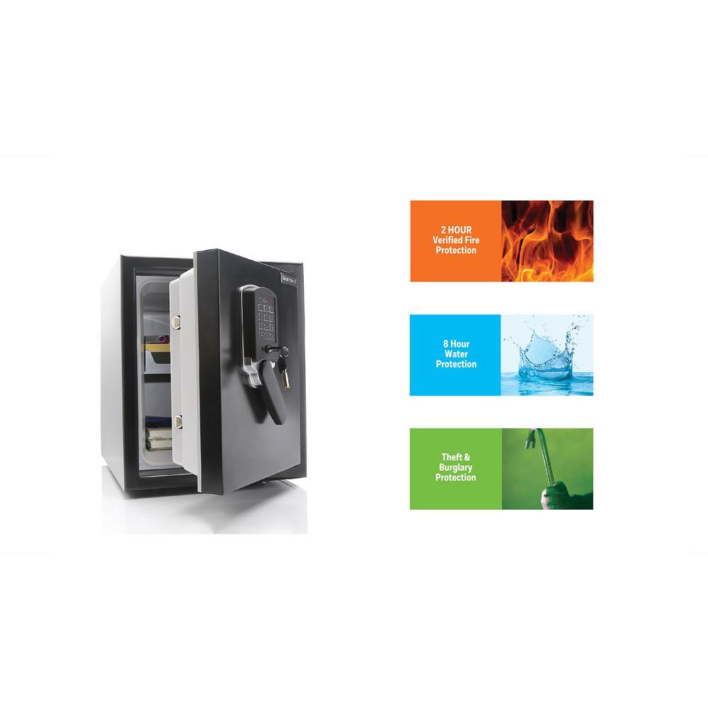 This Honeywell waterproof fire safe provides safety and security for your essential documents and most valuable possessions while affording you the peace of mind that comes from being prepared in the event of a flood, fire or an invasion of your home or office. The Honeywell Model 2605 is the only Waterproof Steel Fire Safe that features a 2 Hour Fire Rating up to 1850°F /1010°C and is waterproof for up to 8 hours even when completely submerged. It has an 0.9 cu. ft. interior storage capacity and is equipped with a programmable digital lock and includes override emergency key access. Honeywell safes are backed by an industry leading 7 year limited warranty. In the event of a fire the contents will be protected but the safe itself will likely be damaged. Our Lifetime After-Fire Free Replacement guarantee means that we will provide you with a new replacement chest if it is damaged in a fire.
