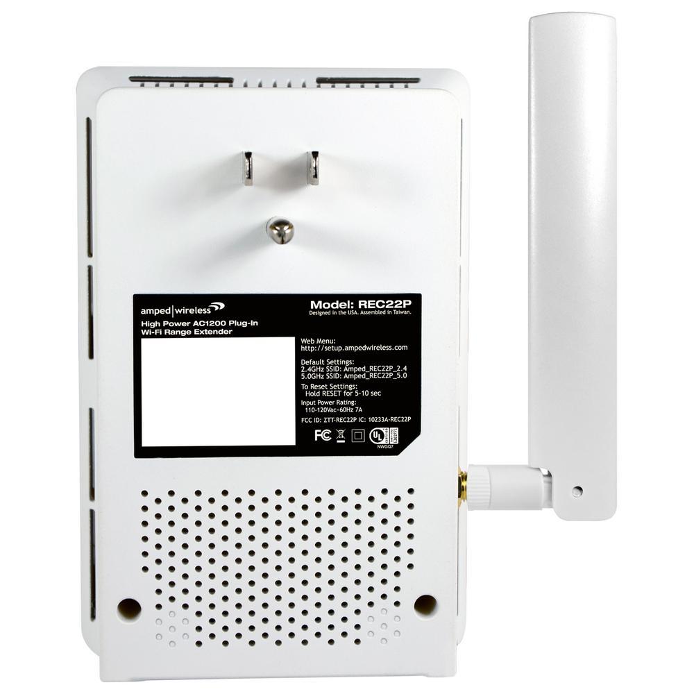 The High Power AC1200 Plug-In Wi-Fi Range Extender expands the range of any standard Wi-Fi network by repeating the signal (2.4GHz and 5GHz) from any Wi-Fi router and redistributing it for more Wi-Fi coverage. The REC22P is equipped with a total of eight High Power amplifiers and both an internal and external high gain antenna to provide up to 11,000 sq. ft. of ultra-fast Wi-Fi coverage. Unleash your iPads, tablets and smart phones with a powerful, plug-in, universal Wi-Fi range extender.