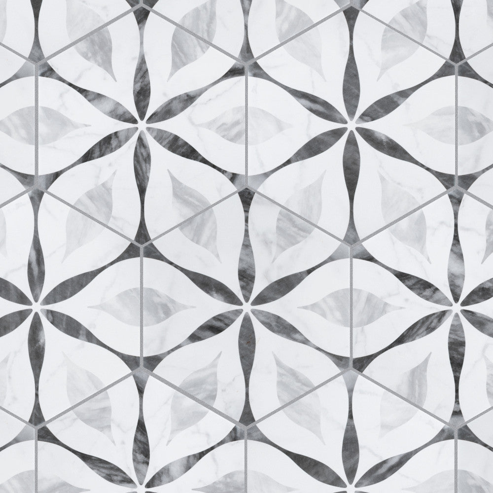 Classico Bardiglio Hex Flower Porcelain Tile, 7x8 in.