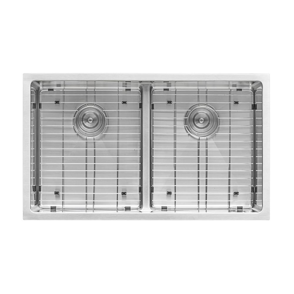 • Includes stainless steel bottom rinse grids that protect the sink from scratches and acts as a drying rack for pots and pans