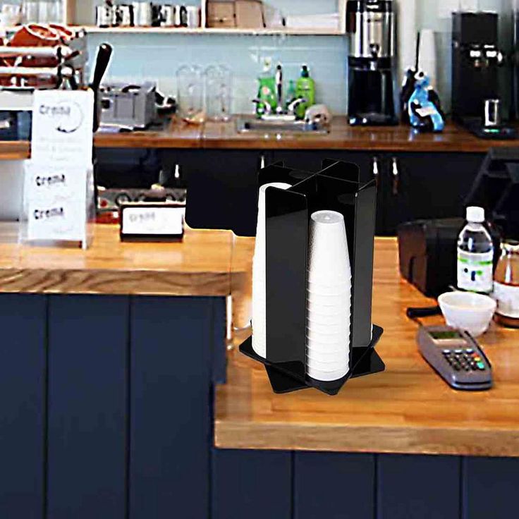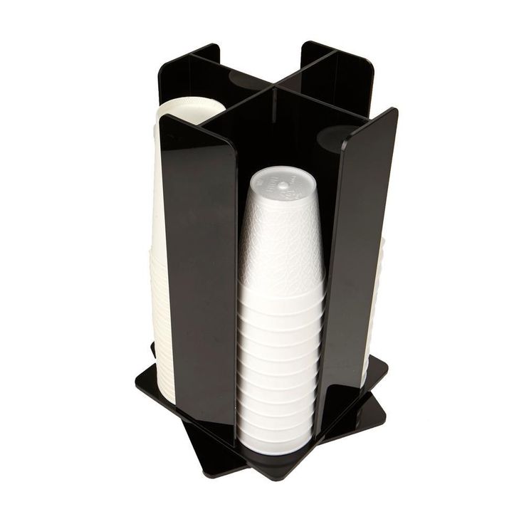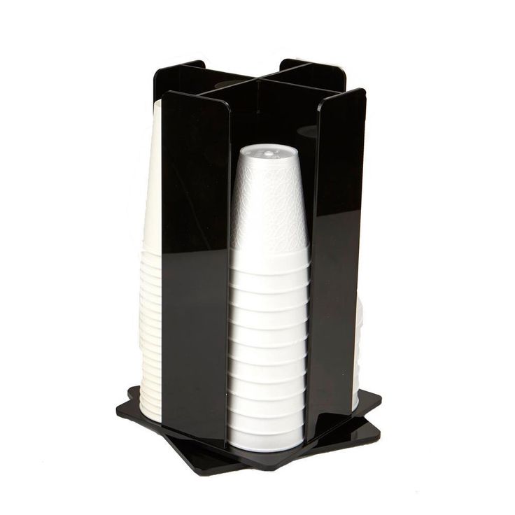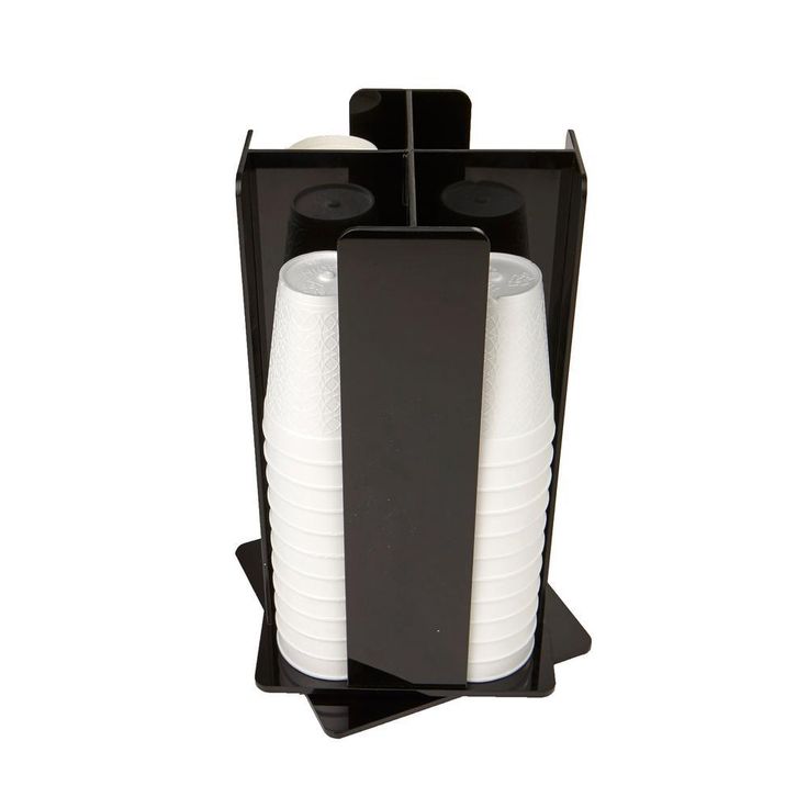 4-Compartment Black Acrylic Rotating Cup Dispenser and Lid Dispenser