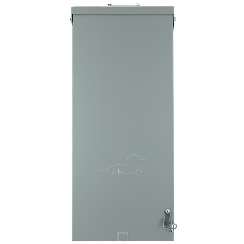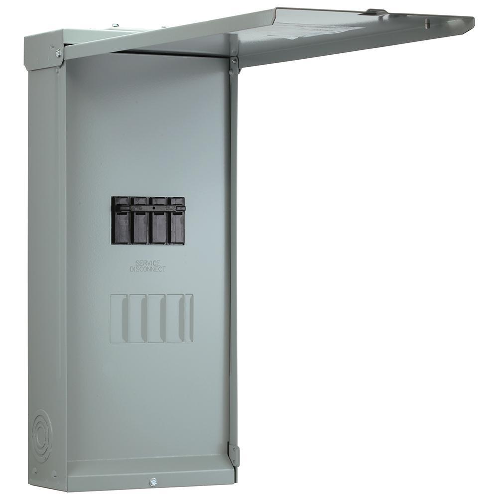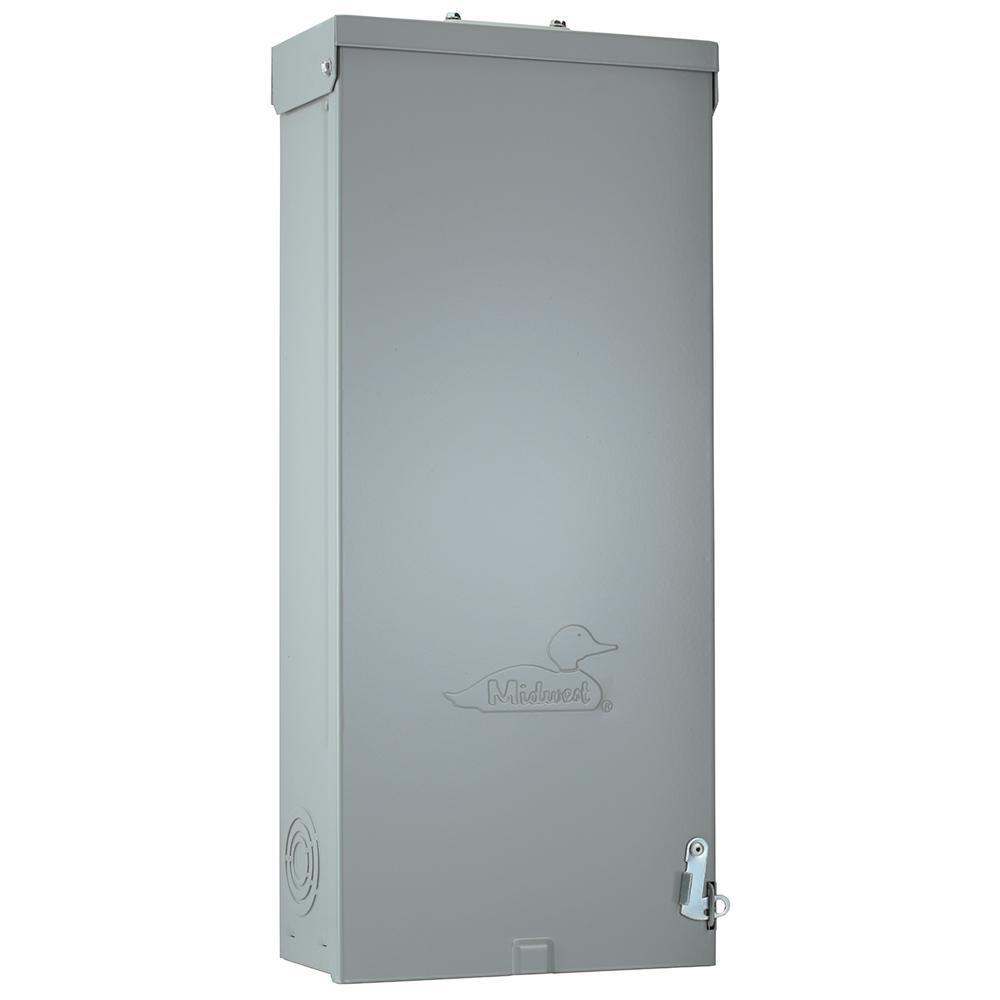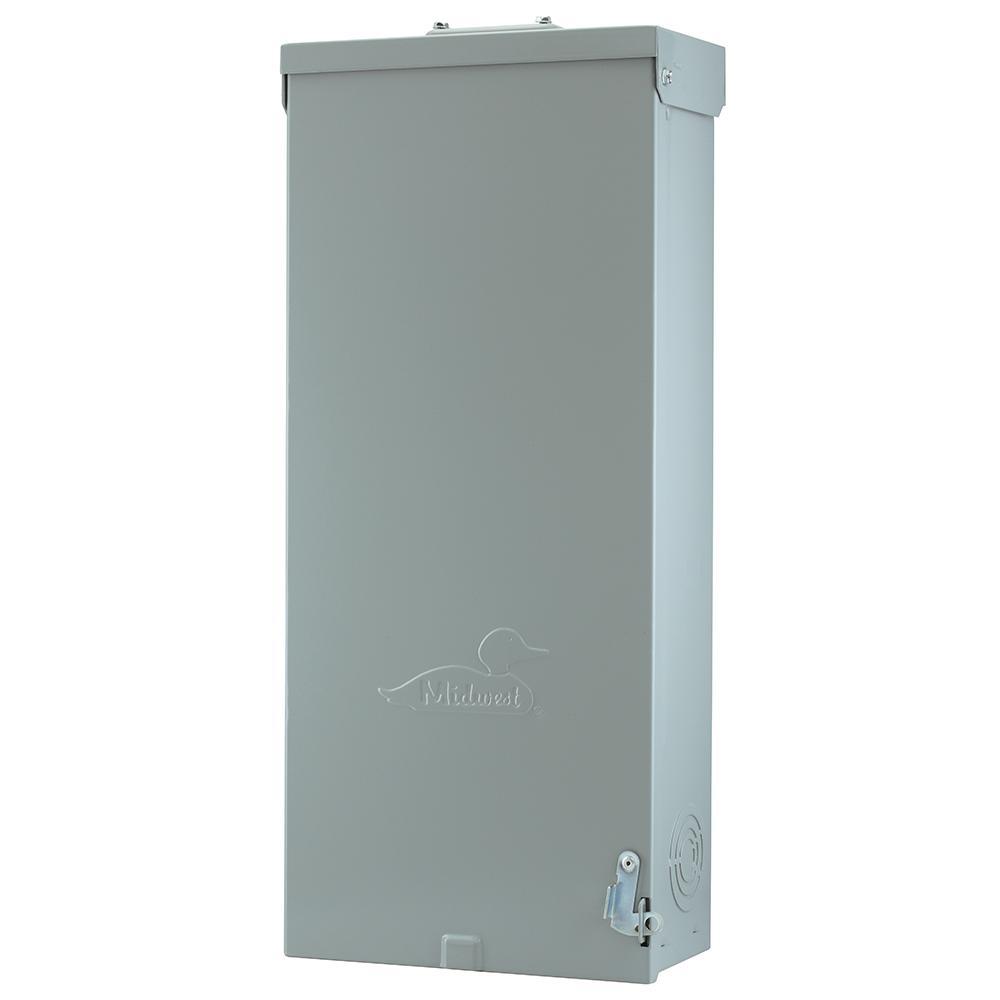 The Midwest 200 Amp 4-space 4-circuit outdoor main breaker load center with feed through lugs is rated for service entrance use. This item is commonly used in a mobile home application. It is thinner than comparable feed through lug load centers allowing use in reduced spaces.