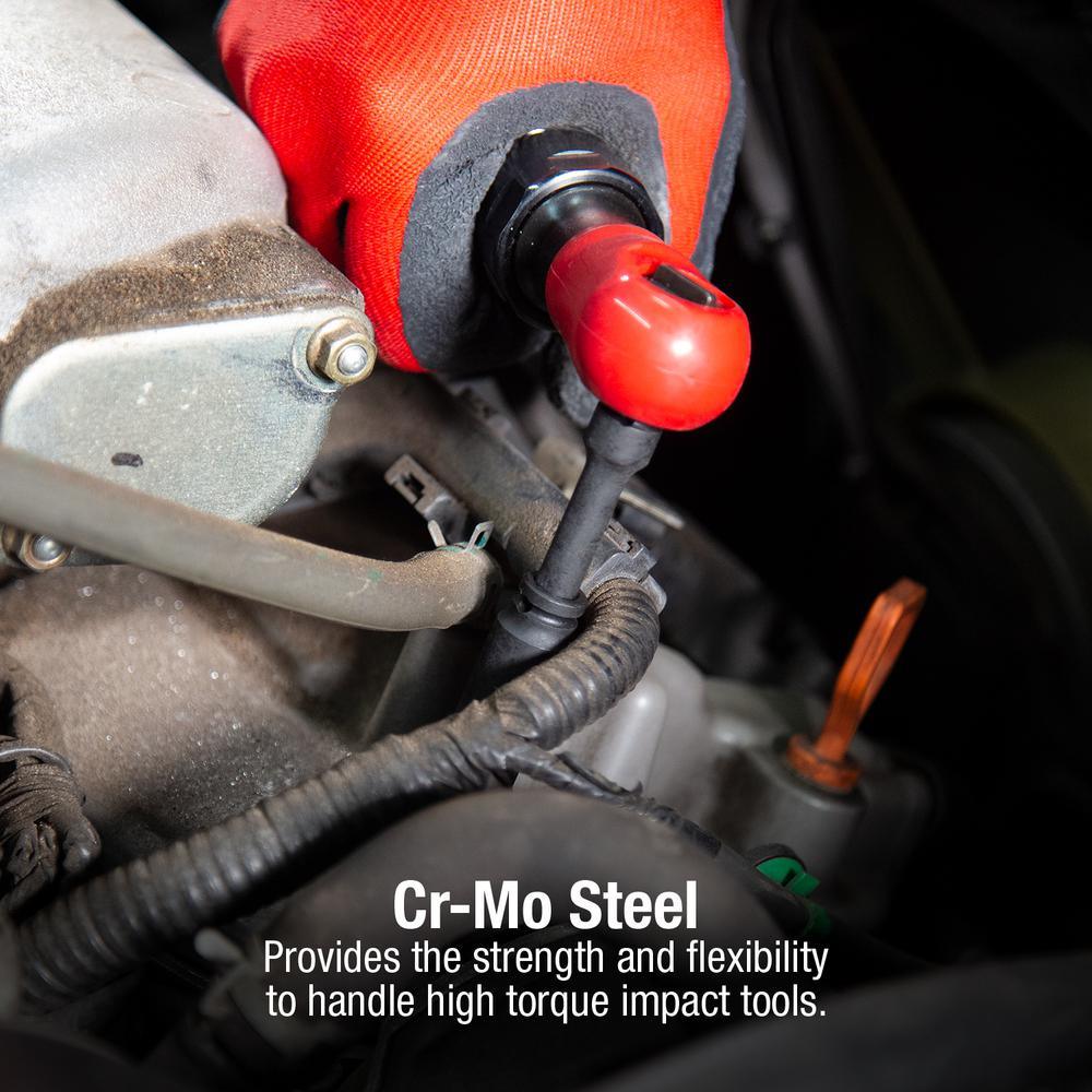 Cr-Mo steel sockets provide the strength and flexibility to handle high torque impact tools