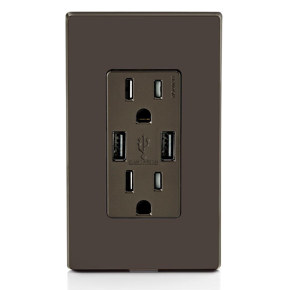 Our USB Charger Devices feature a smart chip that recognizes and optimizes the charging power of your electronic devices for fast and efficient charging. Strategically placed vertical USB ports in all models provide generous room to insert and maneuver charging cords and add to the contemporary and aesthetically appealing design. Plus, adapter-free charging eliminates unsightly clutter contributing to a neat appearance on countertops, desktops or wherever you choose to charge. Engineered for compatibility with the latest technology, Leviton USB charger devices are designed to charge tablets, smart and mobile phones, gaming devices, e-readers, digital cameras and a host of other electronic devices.