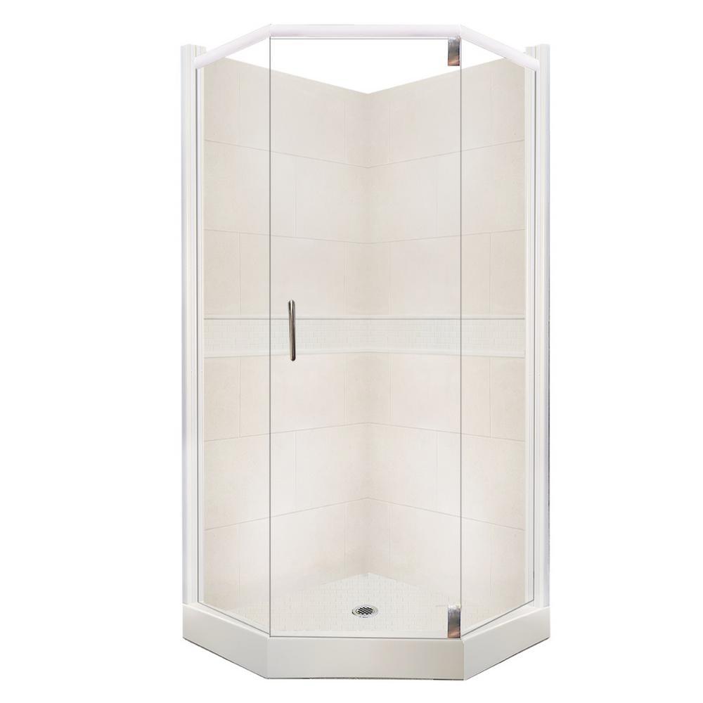 Classic Grand Hinged 36 in. x 36 in. x 80 in. Neo-Angle Shower Kit in Natural Buff and Satin Nickel Hardware