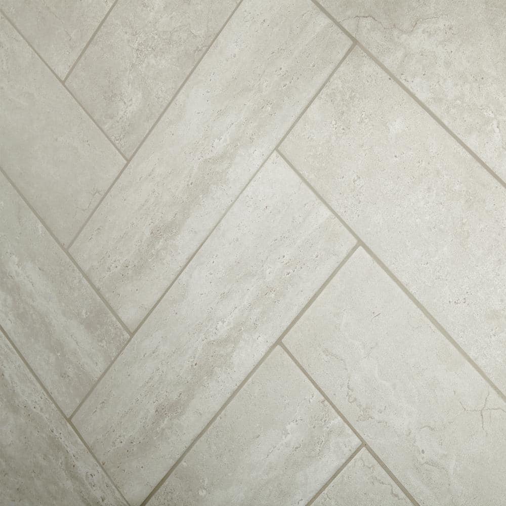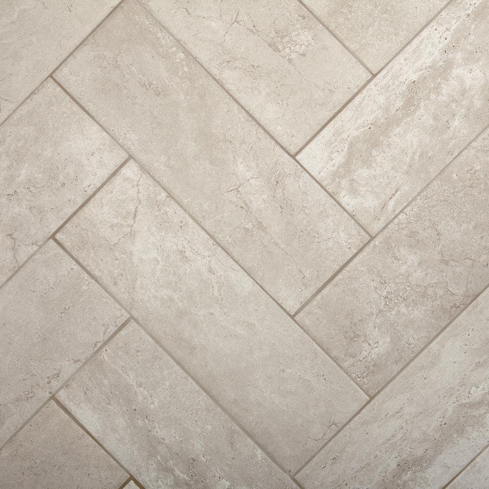Stone-look ceramic wall tile in a soft Greystone hue brings modern texture to backsplashes and shower walls. Glazed matte finish with pressed edges installs easily with mortar and built-in lugs for a 1/16 in. grout joint. Ideal for residential indoor walls and backsplashes.