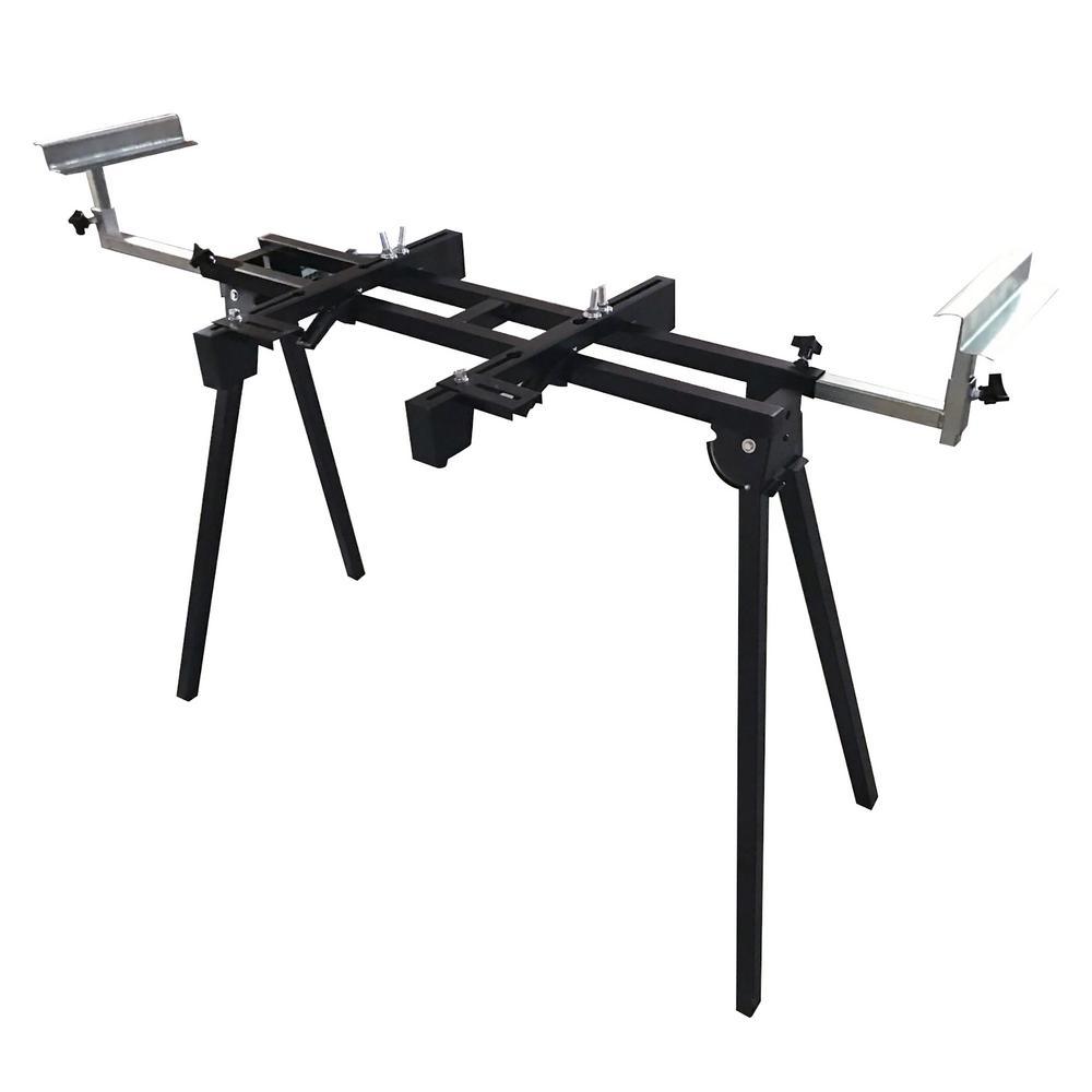 The Steel Core Folding Miter Saw Work Stand features quick-attached machine mounts for easy attachment and removal of your miter saw from the stand. This miter saw work stand folds up for convenience and easy storage and can be used for most miter saws in the market, plus the rail system works with all makes of miter saws. The folding legs with snap pin setup gives you quick and easy assembly.