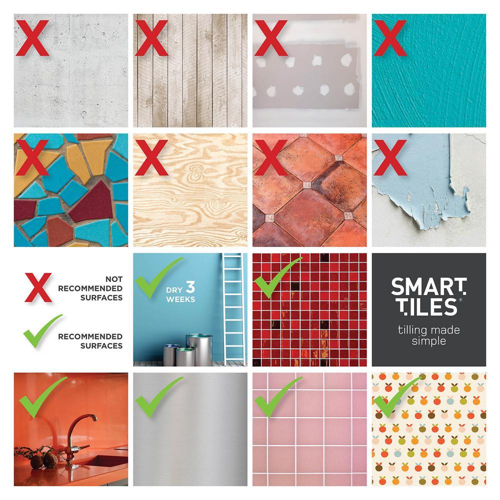 Smart Tiles is the Original, made, do-it-yourself peel and stick backsplash tiles. Especially designed for backsplash in kitchen and bathroom environments, the tiles are resistant to the heat of stovetops and the humidity of bathrooms (do not use in shower). Made of an adhesive substrate topped with a gel component called Gel-O, the peel and stick Smart Tiles have a 3-dimensional effect. We guarantee our tiles to stick without adding extra glue and our patented clear Gel-O component will never yellow or crack with time. The product is lightweight, easy to handle, cut and maintain and Smart Tiles will remain on your walls for as long as you wish them to be. The peel and stick tiles can be installed in minutes over a clean and sleek surface without any mess or specialized tools. We have what it takes for your backsplash ideas.