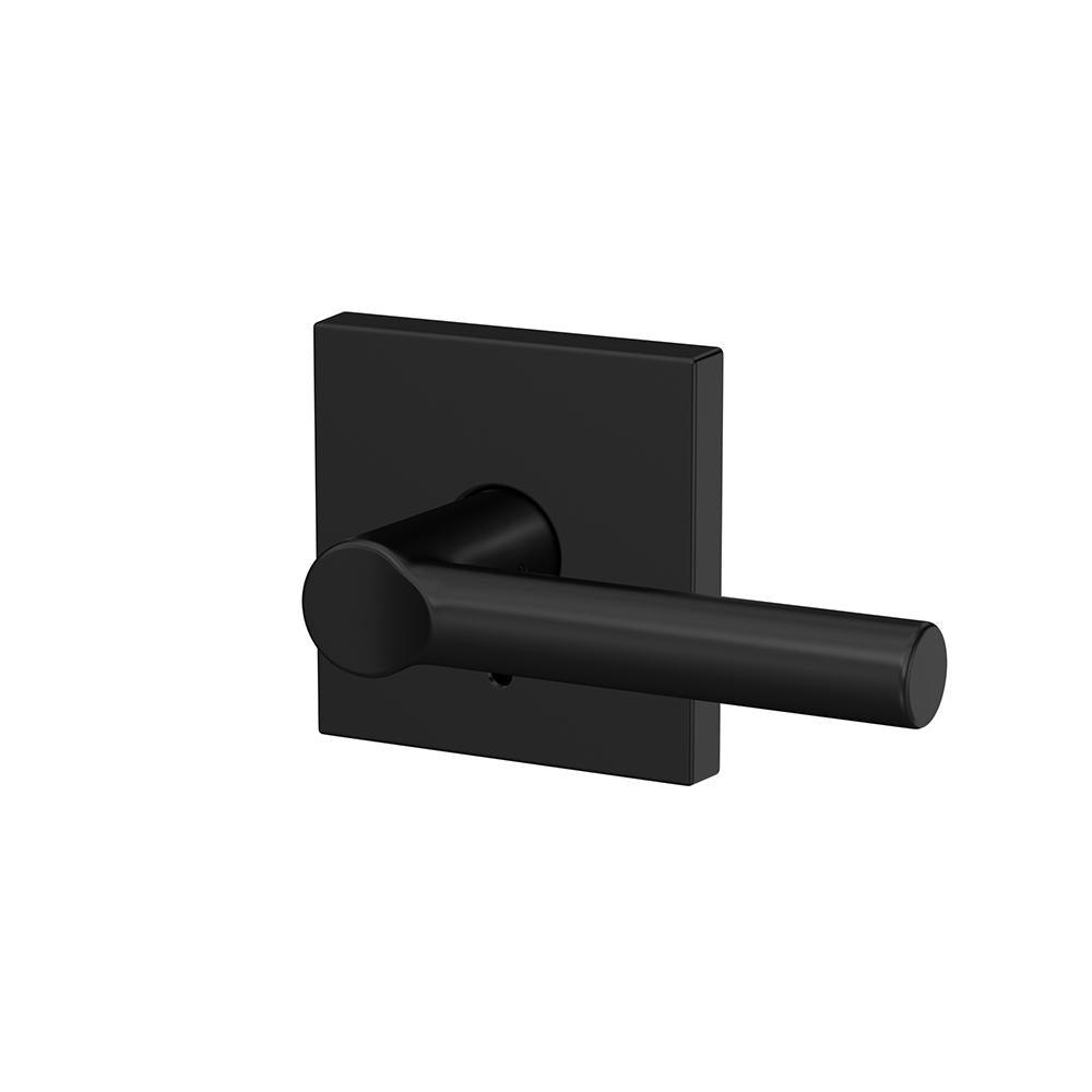 The Schlage Custom Broadway Lever with Collins Trim Passage and Privacy Lock in Matte Black is uniquely designed to work on both Hall/Closet and Bed/Bath doors. It’s easy to switch between locking and non-locking functions. Just insert or remove the locking pin from the pinhole on the interior side of the hardware. Schlage Custom hardware is also designed with premium style in mind, featuring low profile trim and concealed screws for a more polished look. The minimal, tubular design of the Broadway lever offers a tastefully reserved yet high-style look, while the Collins trim’s strong lines and square shape embody refined elegance. The striking appearance of the Matte Black finish creates an elegant look that’s sure to be noticed in any style setting.