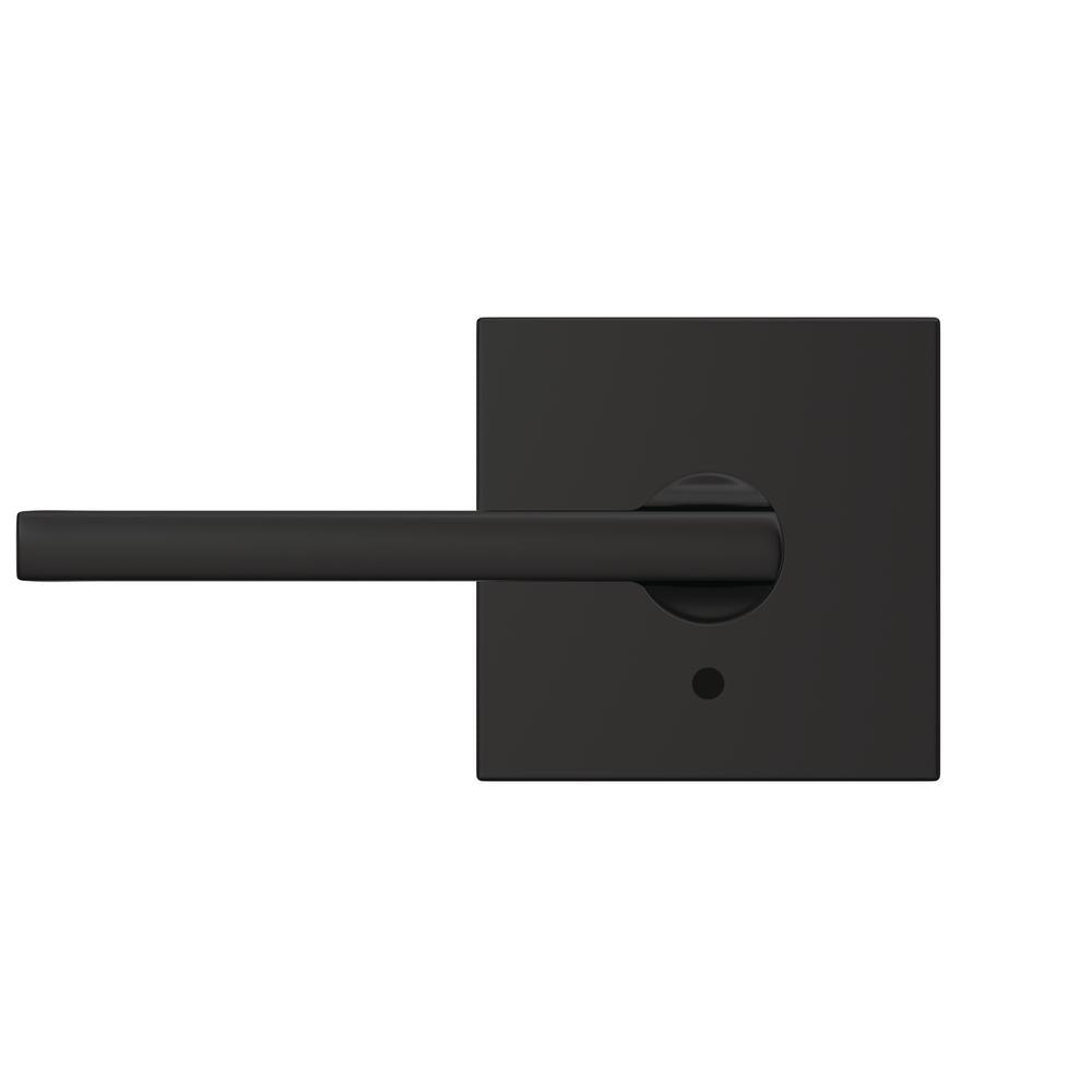 The Schlage Custom Latitude Lever with Collins Trim Passage and Privacy Lock in Matte Black is uniquely designed to work on both Hall/Closet and Bed/Bath doors. It’s easy to switch between locking and non-locking functions. Just insert or remove the locking pin from the pinhole on the interior side of the hardware. Schlage Custom hardware is also designed with premium style in mind, featuring low profile trim and concealed screws for a more polished look. The Latitude lever offers a crisp perspective on minimalist design with its clean lines and rectangular features, while the Collins trim’s strong lines and square shape embody refined elegance. The striking appearance of the Matte Black finish creates an elegant look that’s sure to be noticed in any style setting.