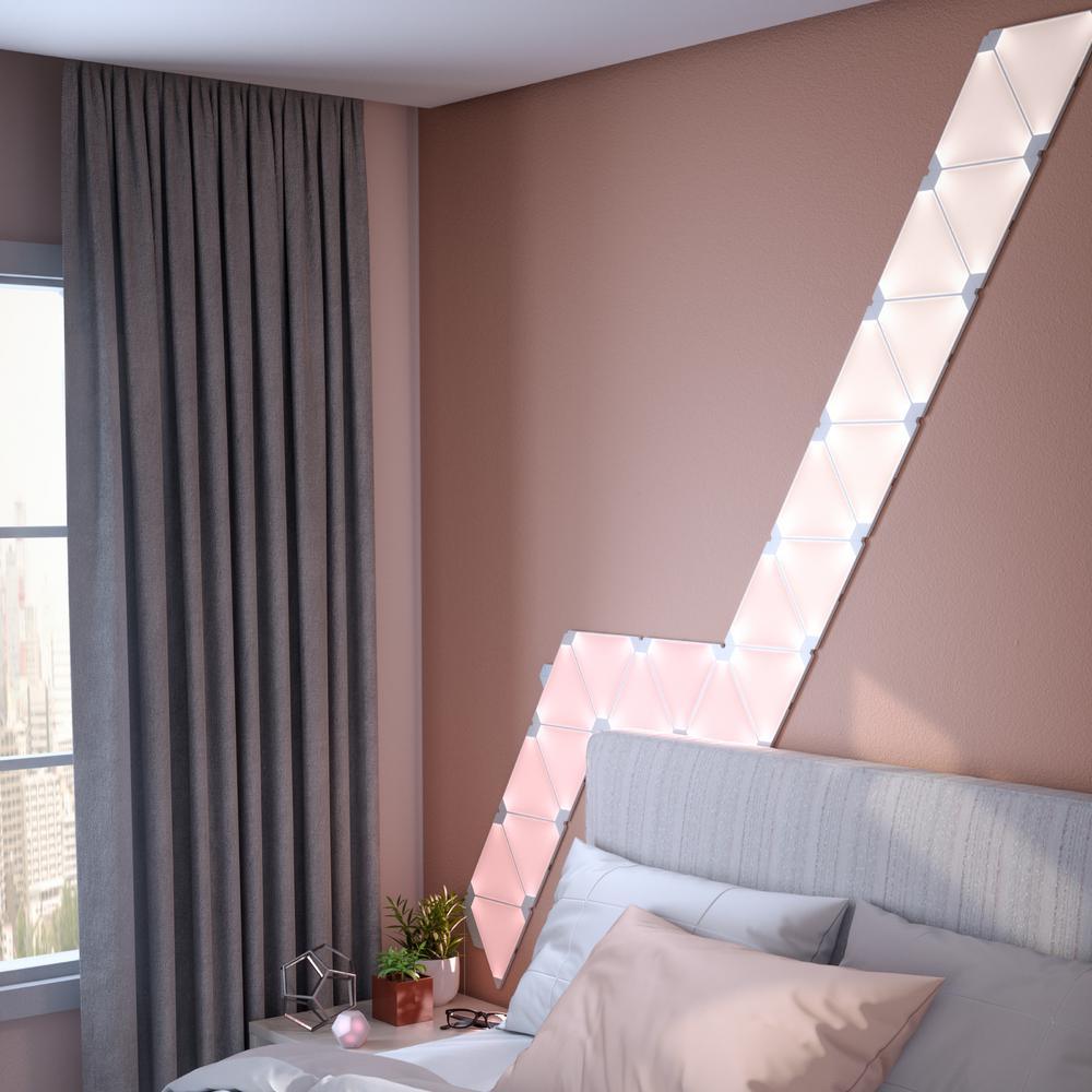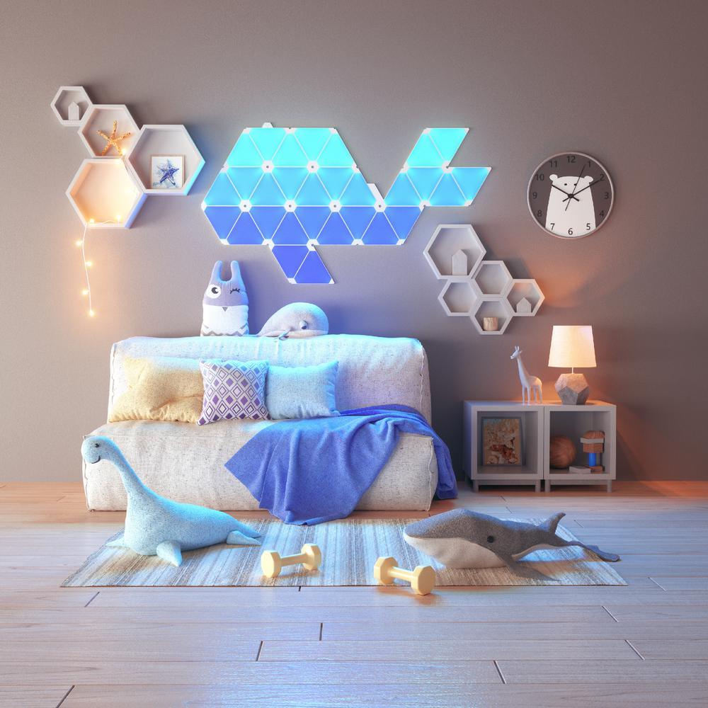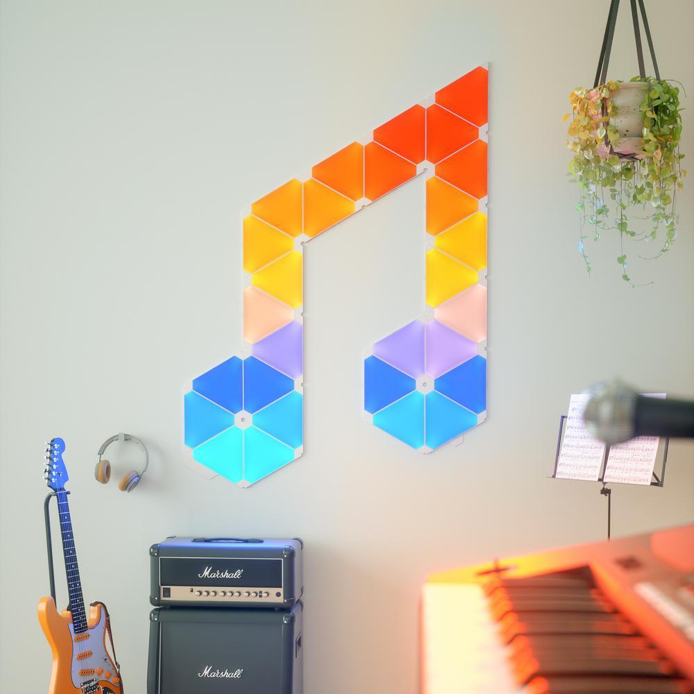 Personalize your lighting experience with this Nanoleaf Rhythm Light Panel. This starter kit is modular smart decor lighting that produces a stunning statement of artistic technology in your space. The panel features hundreds of colors ranging from 1200K to 6500K white light temperature. You can customize it with the intuitive Nanoleaf App, which allows you to set lighting schedules and more. Entertain family and friends with this smart panel, which transforms your favorite songs into dancing symphonies of color and light. You can easily install this lighting option on any flat surface with the included mounting tape.