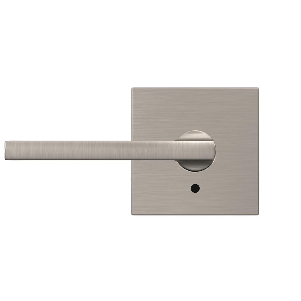 The Schlage Custom Latitude Satin Nickel Dummy Door Lever with Collins Trim is uniquely designed with premium style in mind, featuring low profile trim and concealed screws for a more polished look. Schlage Custom dummy hardware comes in pairs, making it perfect for French doors. The Latitude lever offers a crisp perspective on minimalist design with its clean lines and rectangular features, while the Collins trims strong lines and square shape embody refined elegance especially when wrapped in our versatile Satin Nickel finish.