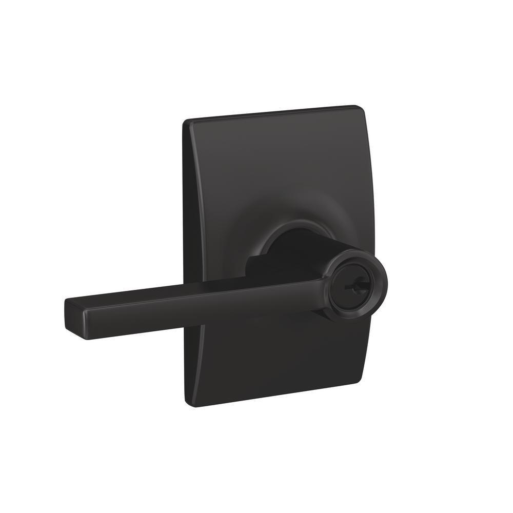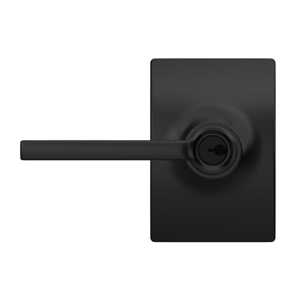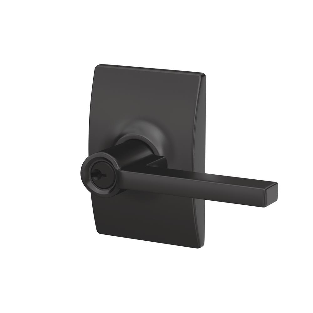 The Schlage Latitude Matte Black Keyed Entry Door Lever with Century Trim unlocks when the door is opened from the inside, allowing you to leave quickly and conveniently, and re-enter easily. The Latitude lever offers a crisp perspective on minimalist design with its clean lines and rectangular features, while the Century Trim is chic with a delicate, slightly curved shape. The striking appearance of the Matte Black finish creates an elegant look that's sure to be noticed in any style setting. Plus, its been designed and tested with strength and durability in mind.