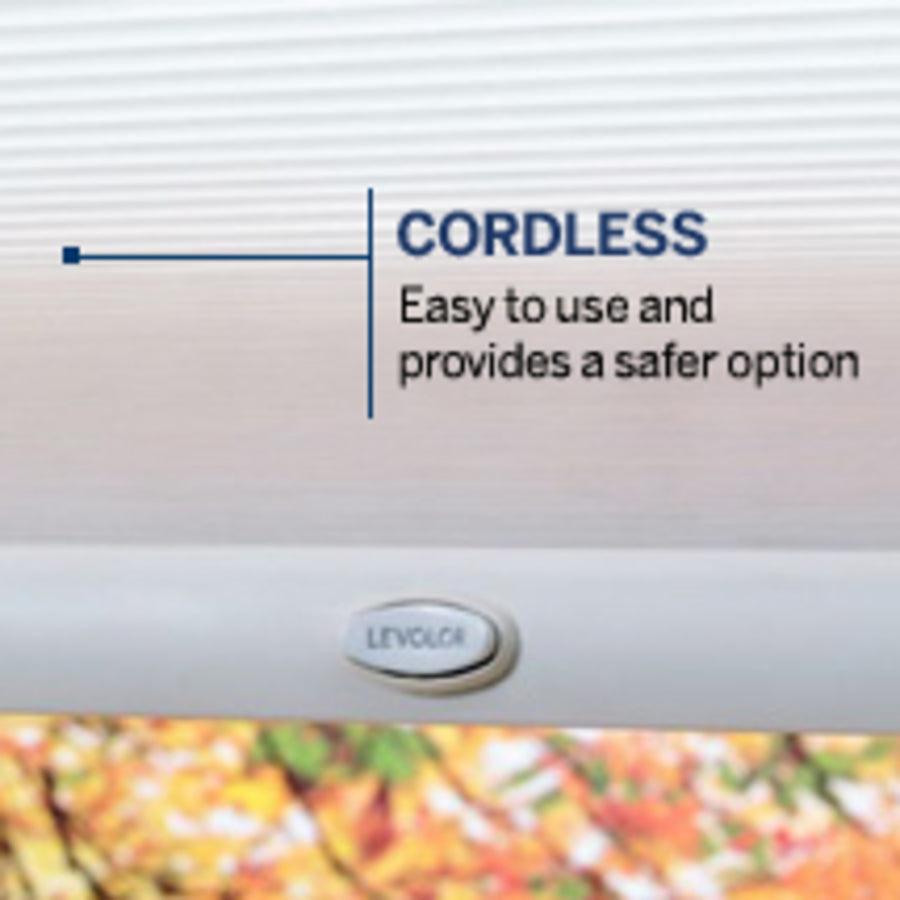 Cellular shades create a timeless look complete with cordless design safe for children and easily leveling adjustibility