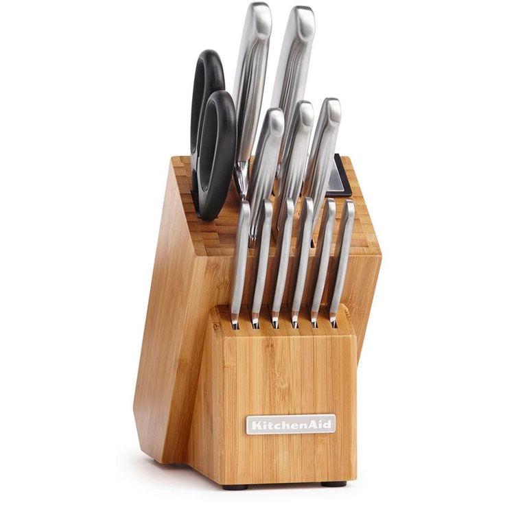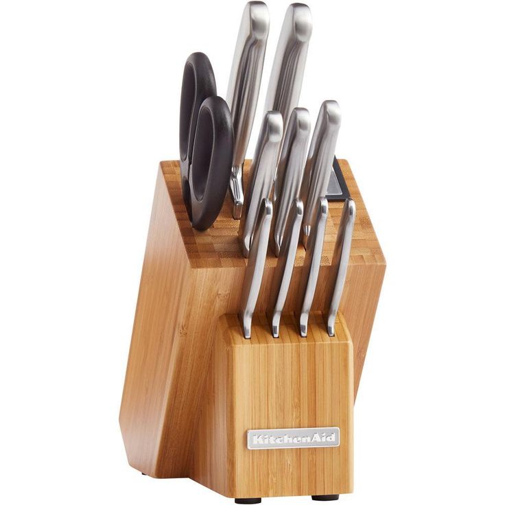 12-Piece Classic Forged Brushed Stainless Steel Knife Set with Bamboo Storage Block