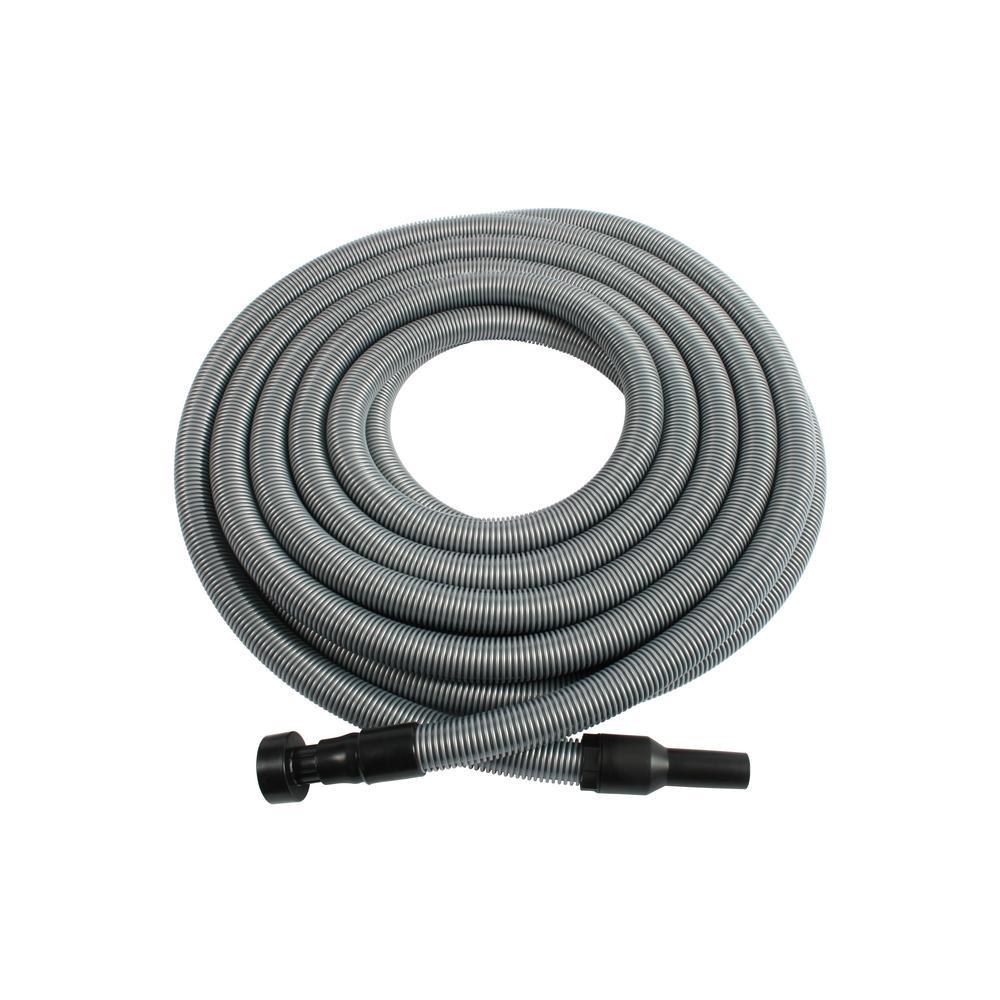 Cen-Tec Systems' 93169 hose is a 50 ft. extension hose that will fit onto your home shop vac. The 1.25 in. Dia high quality crushproof hose is highly flexible and durable, with a smooth interior which improves airflow. On 1 end is a 1.25 in. swivel stub tube that fits into standard 1.25 in. (32mm) vacuum wands and tools. On the other end is a 2.125 in. to 2.25 in. shop vacuum adapter, which will work with most Shop-Vac, Ridgid, Craftsman, Stanley, Vacmaster models, as well as most other shop-vacuum brands. The hose is silver in color, and perfect for hooking onto your shop vacuum to clean out the garage, car, or home shop. It will even excel just vacuuming around the house.
