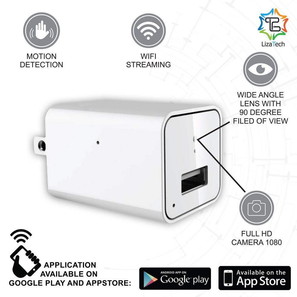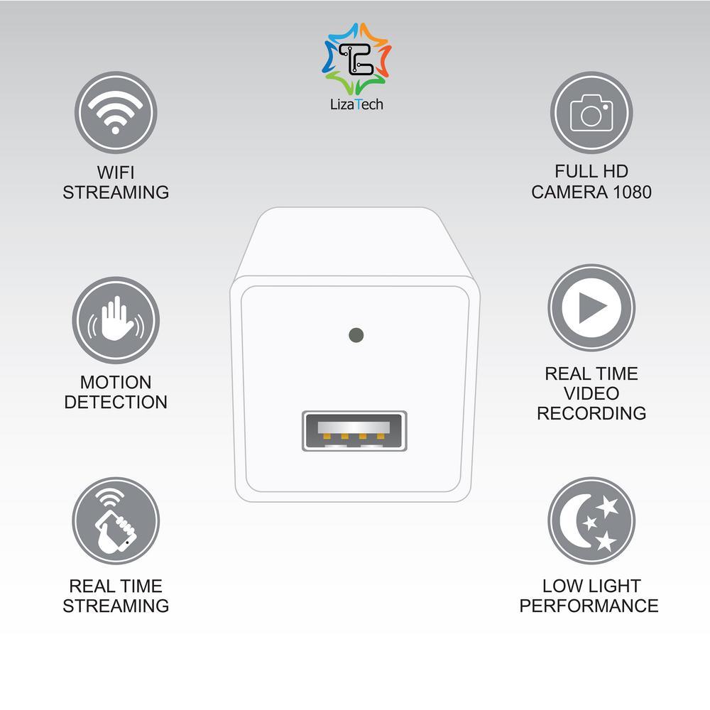 The LizaTech LizaCam USB Wall Plug With Hidden IP Camera might look like an ordinary USB wall charger, but this wall plug features a hidden HD camera allowing you to capture HD video. Using the revolutionary LizaCam App, you're able to see exactly whats going on when you aren't around. HD WI-FI HIDDEN CAMERA - The hidden camera records spectacular HD audio/video that allows you to remotely control and view your space in real-time from an iPhone, Android device, PC or Mac using Wi-Fi remote view: Real-time Audio and Video Recording; HD Video Resolution, Smartphone/tablet APP Remote View and Control, Supports PC Computer Viewing and Control; Supports Micro SD cards - 32GB MAX (not included). USB charger: The LizaTech LizaCam USB Wall Plug With Hidden IP Camera can charge your smartphone, tablet and other devices via USB.