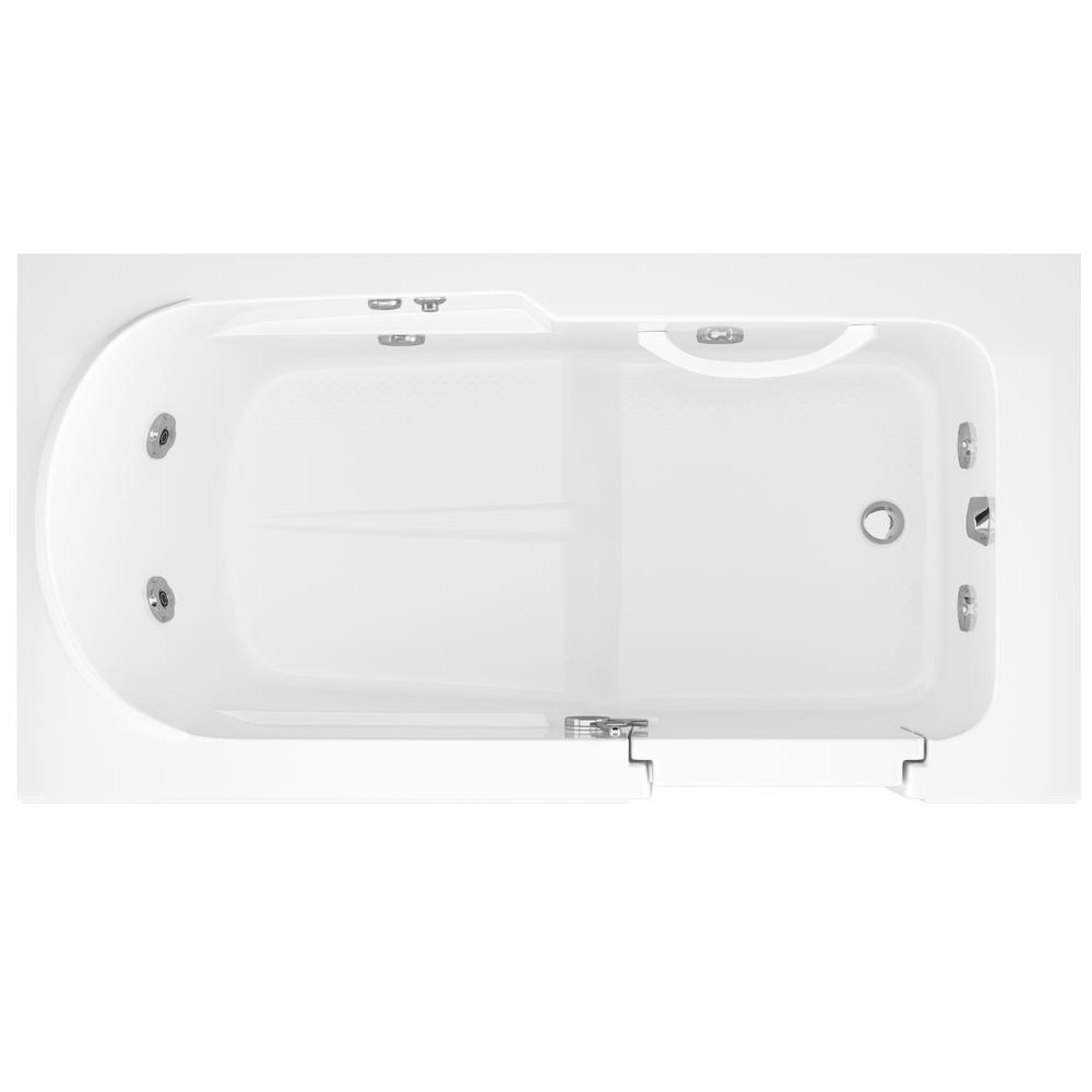Experience safer, independent bathing with this Universal Tubs walk-in whirlpool tub paired with a 1.28 GPF single-flush toilet. The acrylic, alcove-ready tub features six adjustable jets, a friction heater to maintain water temperature, and a right-hand, pressure-sealed swing door for low-threshold entry. Set includes a two-piece elongated toilet with soft-close lid and water-saving performance.