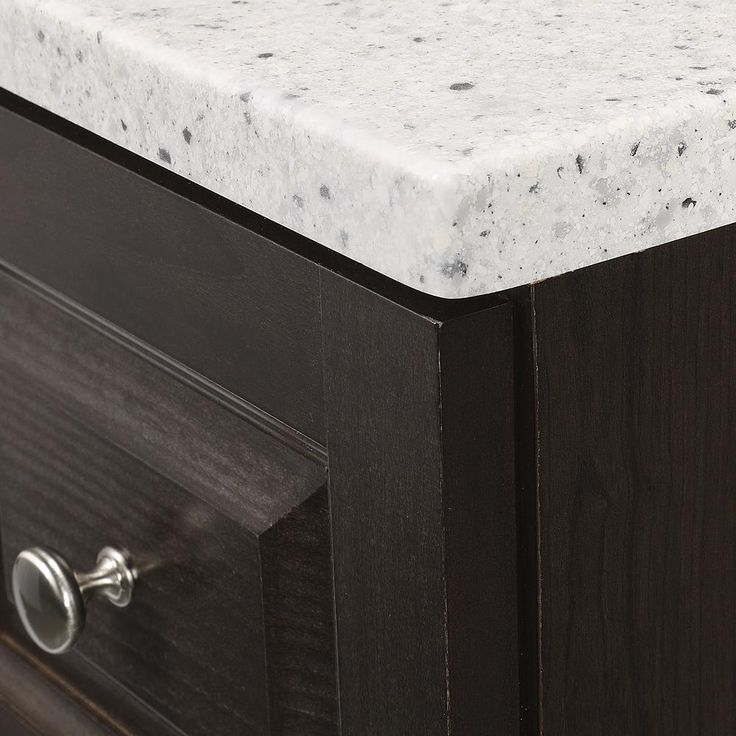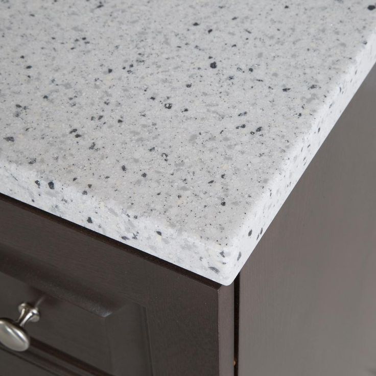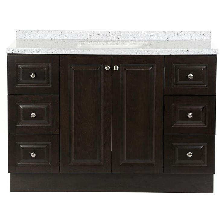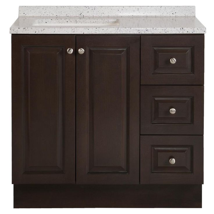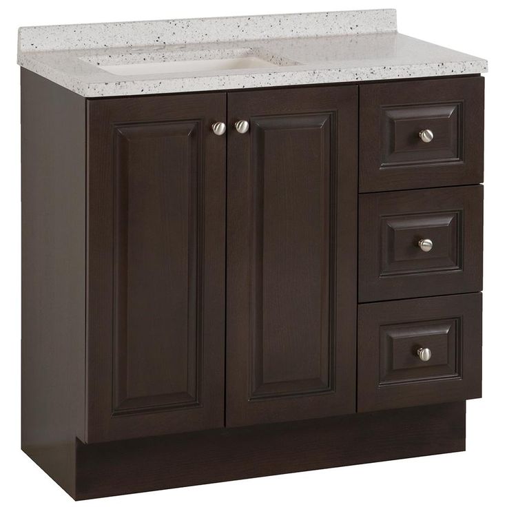The Glacier Bay Northwood 36.5 in. vanity in Dusk with Solid Surface vanity top in Silver Ash has traditional styling that will complement a wide variety of home decor. The vanity offers plenty of storage space for your essentials with a large cabinet concealed by 2 raised panel doors and 3 full extension side drawers. The Silver Ash vanity top is 2-toned with a snow white base and white, cream/eggshell, gray, and black flakes and a white integral rectangular sink bowl. Decorated with smooth brushed nickel hardware, the Northwood vanity is a breathtaking choice for anyone wishing to upgrade their space.