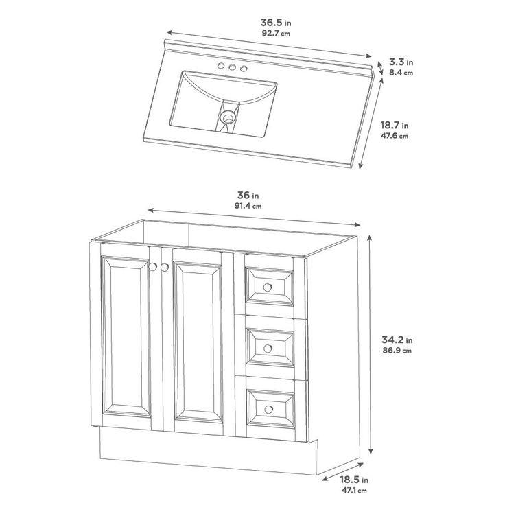 Assembled dimensions are 36.50 in. W x 18.75 in. D x 37.57 in. H