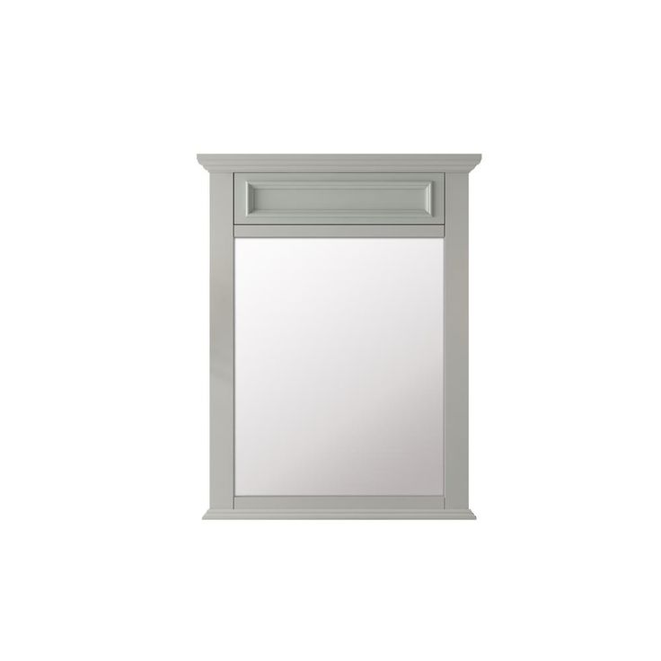 With distinctive crown and base molding and rectangular trim above the beveled mirror, our Sadie Dove grey Wall Mirror packs plenty of detail into its sleek form. Stylish and functional, this bathroom mirror is a great addition above the sink. It would also work well as a dresser mirror in the bedroom.