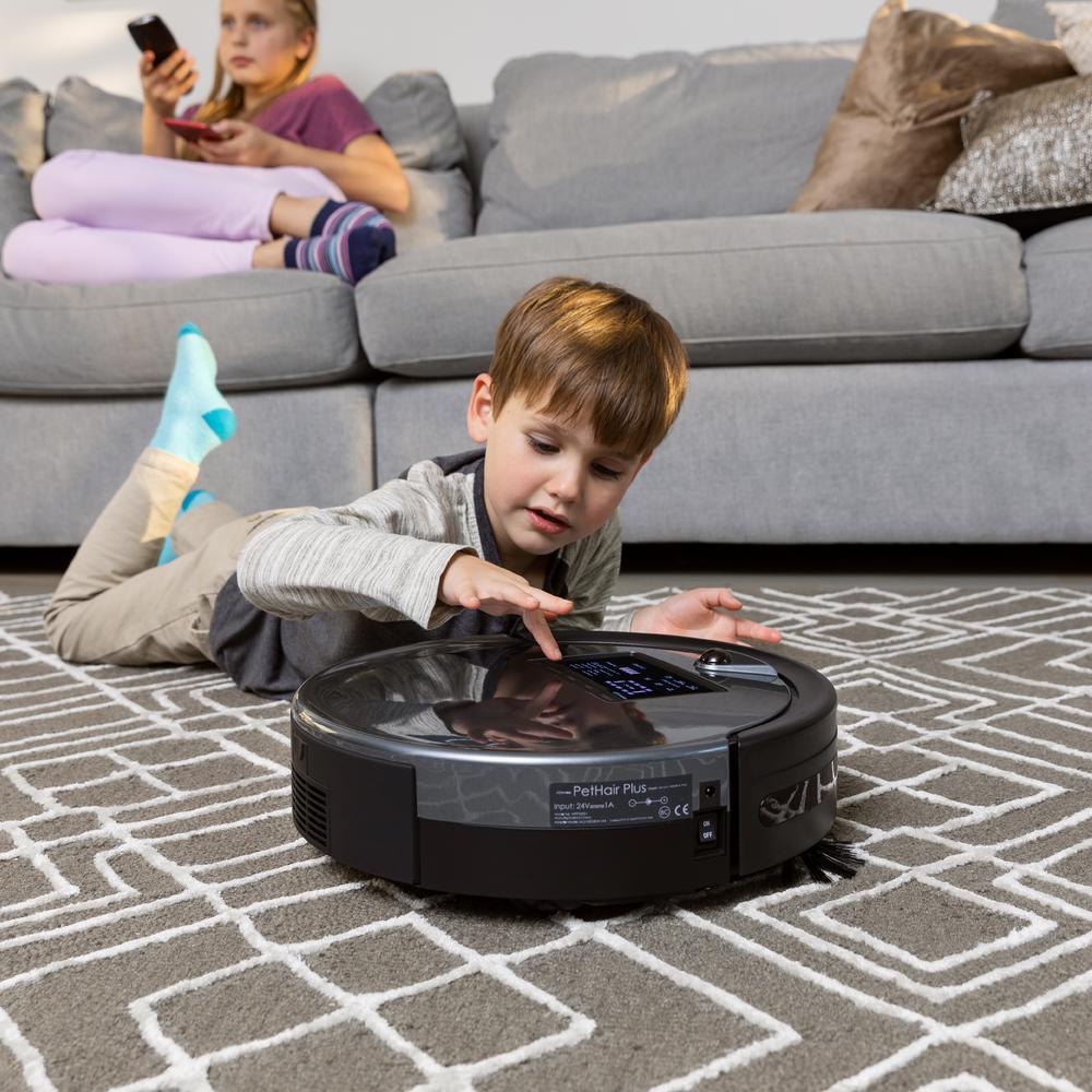 Shed happens! And when it does, Bob PetHair Plus is your best friend. This Bob is our strongest floor cleaner and provides the best relief for pet owners who love their pets, but not their mess. Use blOck Plus, the only digital barrier with two perpendicular digital walls, to keep Bob out of unwanted areas by creating up to two invisible barriers.