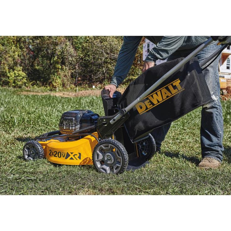 The 2x 20-Volt MAX DEWALT 3-in-1 Cordless Lawn Mower is powered by (2) 20-Volt MAX batteries to deliver 2x the voltage. The high-output brushless motor delivers powerful performance and increases torque in high overgrowth. The lawn mower's 3-in-1 capability allows for mulching, bagging, or rear clipping discharge. It is perfect for properties up to 1/4 acre. For optimal performance, the battery-powered lawn mower can be paired with high capacity 20-Volt MAX DEWALT batteries or FLEXVOLT (R) batteries for extended runtime and maximum compatibility across DEWALT battery systems. This cordless lawn mower is designed to help you get the job done with a 20 in. metal deck, quick and easy single lever height adjustment, and folding handles for compact upright storage.