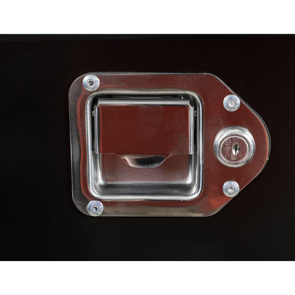 The Black Steel Trailer Tongue Truck Tool Box is designed with a tapered front to fit your A-frame trailer. It is built tough with a 14-Gauge steel body and a thick 12-Gauge steel lid. It helps contents stay safe and protected with a locking stainless steel paddle latch and weather-resistant steel continuous hidden hinge.