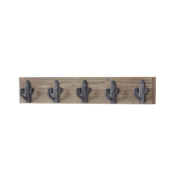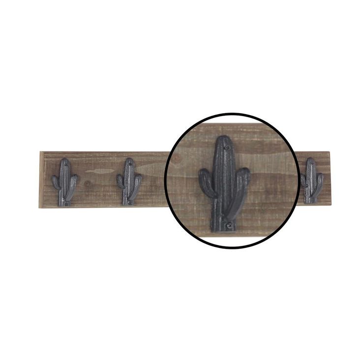 This wall hook rack will bring a rustic vibe to your space with its distressed finish and textured cactus hook design. It features 4-iron hooks that offer convenient and stylish hanging storage and display for a variety of items. Its sturdy wooden backboard is easy and safe to mount on most wall types.