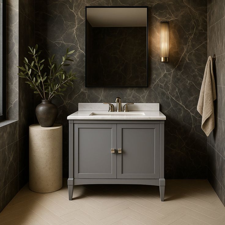 The Parkcrest 42-inch bathroom vanity combines transitional design with practical functionality. Featuring a dove grey finish, white marble top, and ample storage, it is perfect for enhancing any bathroom space.
