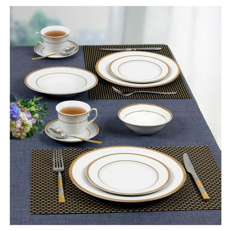 24-Piece Formal Gold Border Porcelain Dinnerware Set (Service for 4)