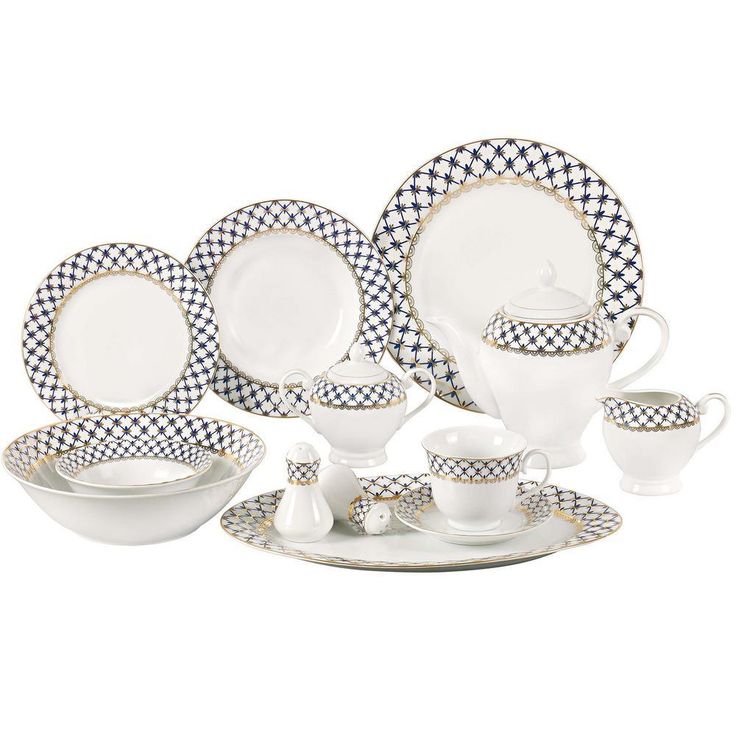 57-Piece Specialty Blue Porcelain Dinnerware Set (Service for 8)