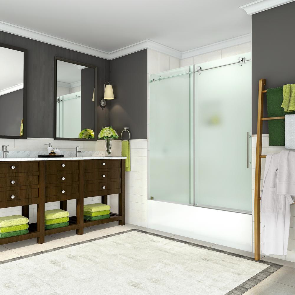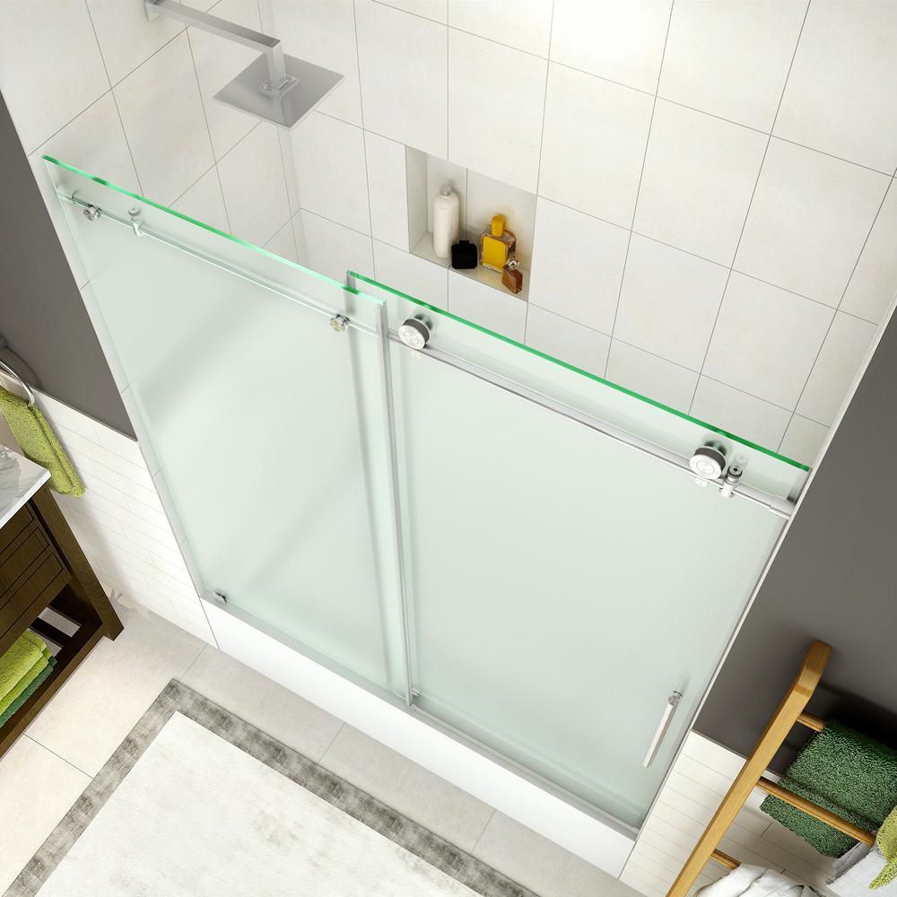 56 in. to 60 in. W x 60 in. H frameless sliding tub door with frosted glass