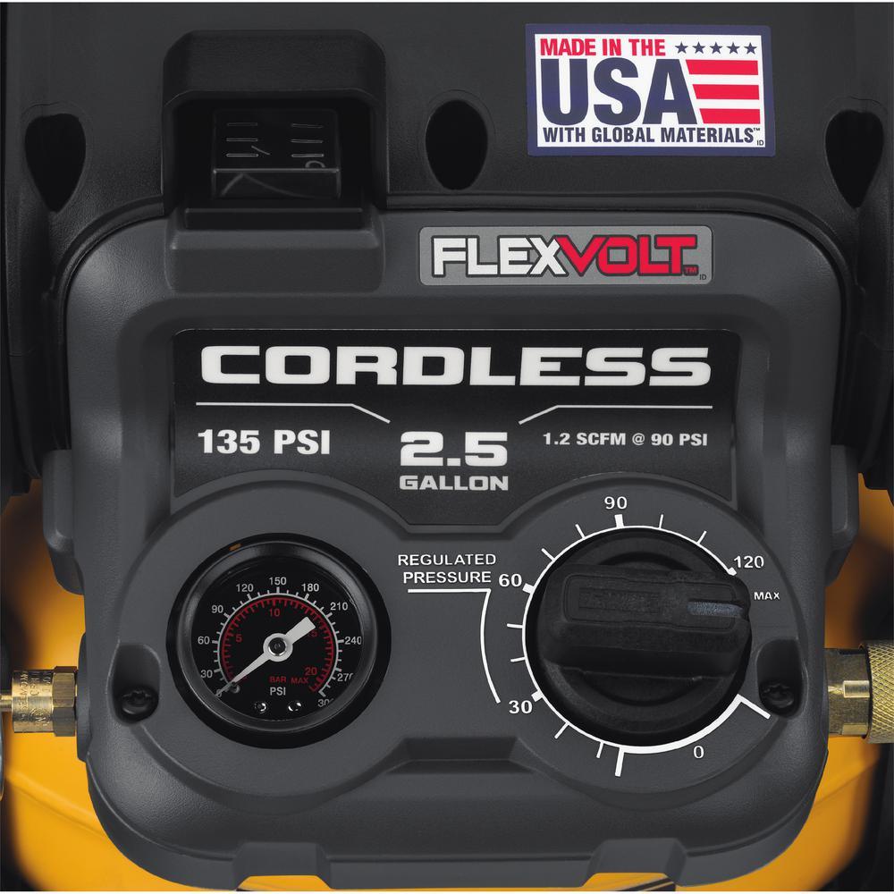 FLEXVOLT 2.5 Gal. 60-Volt MAX Brushless Cordless Electric Air Compressor Kit w/ Battery 2Ah, Charger and Bonus Battery