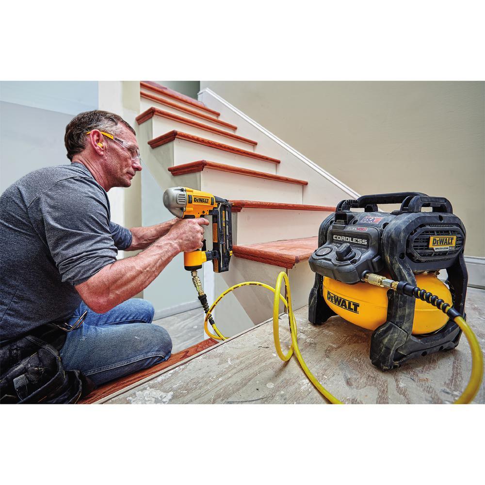 Conveniently portable, this FLEXVOLT 60-Volt MAX 2.5-gallon cordless air compressor allows you to use the tools you already have. It drives 1,220 nails with each battery charge and has the run time to complete a variety of other applications. This durable unit features a OneTurn regular to take the fight out of toying with a dial. It’s brushless motor and heavy-duty oil-free pump provide cordless convenience with the power of a corded tool.