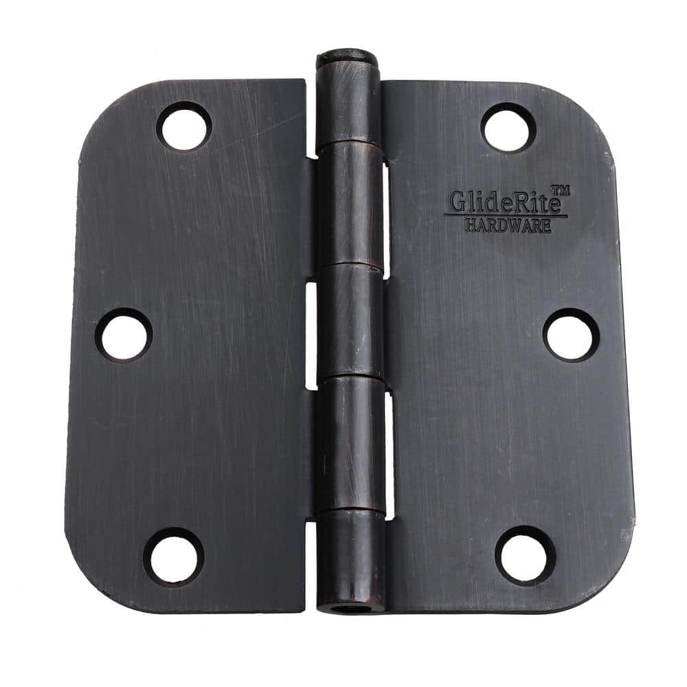 These GlideRite full-mortise steel door hinges feature a rich oil-rubbed bronze finish and 5/8 in. corner radius for a clean, traditional look. Built from durable steel with removable pins, they come fully assembled with matching screws for straightforward interior residential installations.