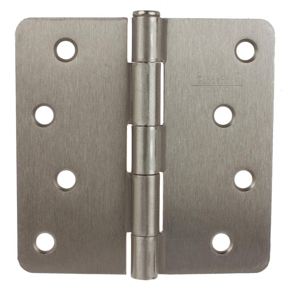 GlideRite 4 in. Satin Nickel Steel Door Hinge, 1/4 in. Corner Radius, with Screws (12-Pack)