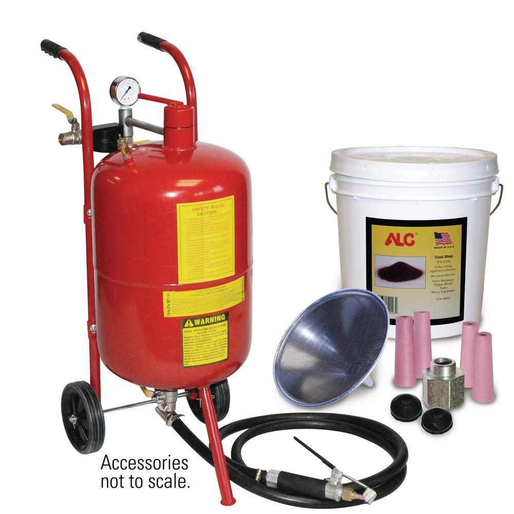 This Abrasive Pressure Blaster is perfect for a wide variety of surface preparation jobs, such as removing paint, scale, rust and oxidation. It features an 8 ft. blast hose, durable wheels and handles to allow for easy transport and a steel dead man shutoff handle for longevity and safety. Includes everything you need to start your blasting project today. Simply fill with abrasive and connect to an air compressor.