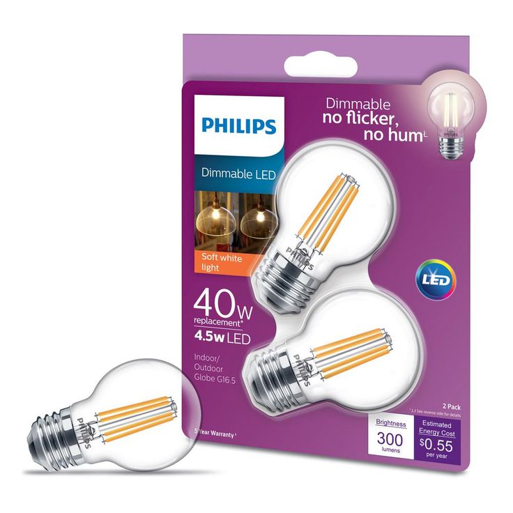 Philips 40-Watt Equivalent G16.5 Dimmable LED Light Bulb Soft White Globe (2-Pack)