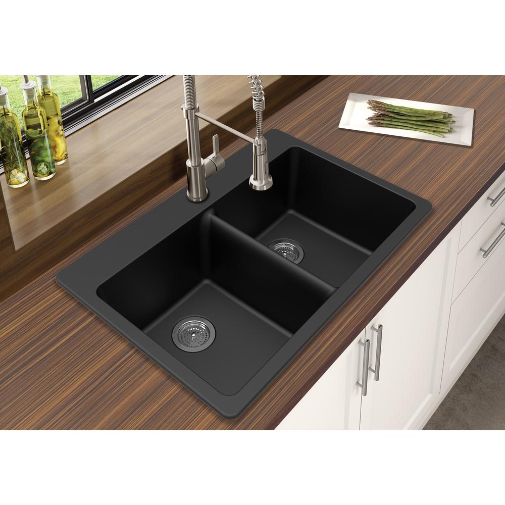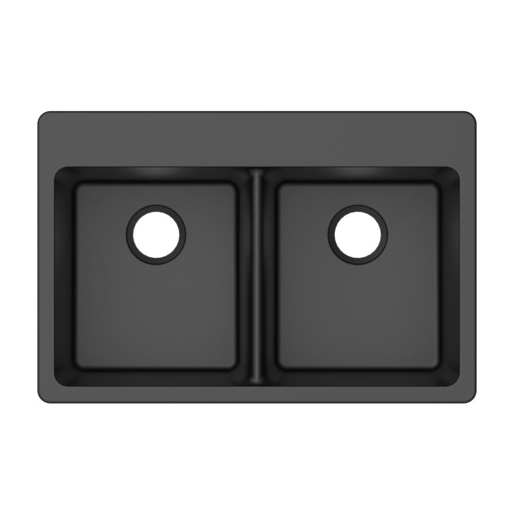 Dual Mount Granite Composite 33 in. L x 22 in. L x 9.5 in. 0-5 Faucet Holes Double Equal Bowl Kitchen Sink in Black