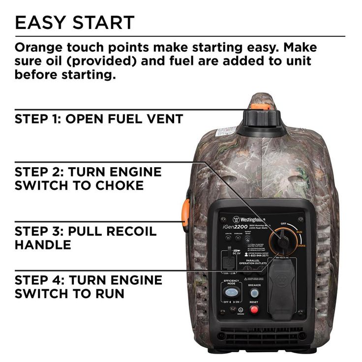 Westinghouse iGen2200 - Camo 2,200/1,800 Watt Gas Powered Inverter Generator with Parallel Capability and Enhanced Fuel Efficiency