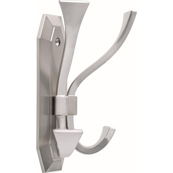 The graceful lines of the Beveled Oversized Double Hook by Liberty make this a fashionable accessory for your home storage needs. The popular Satin Nickel finish is the perfect complement to any room's decor. And the double hook construction provides maximum hanging capacity for your jackets, handbags, robes, towels and more.