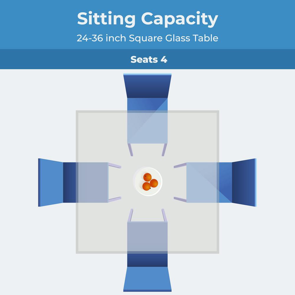 Available sizes: From 12 in. up to 60 in. square glass table top