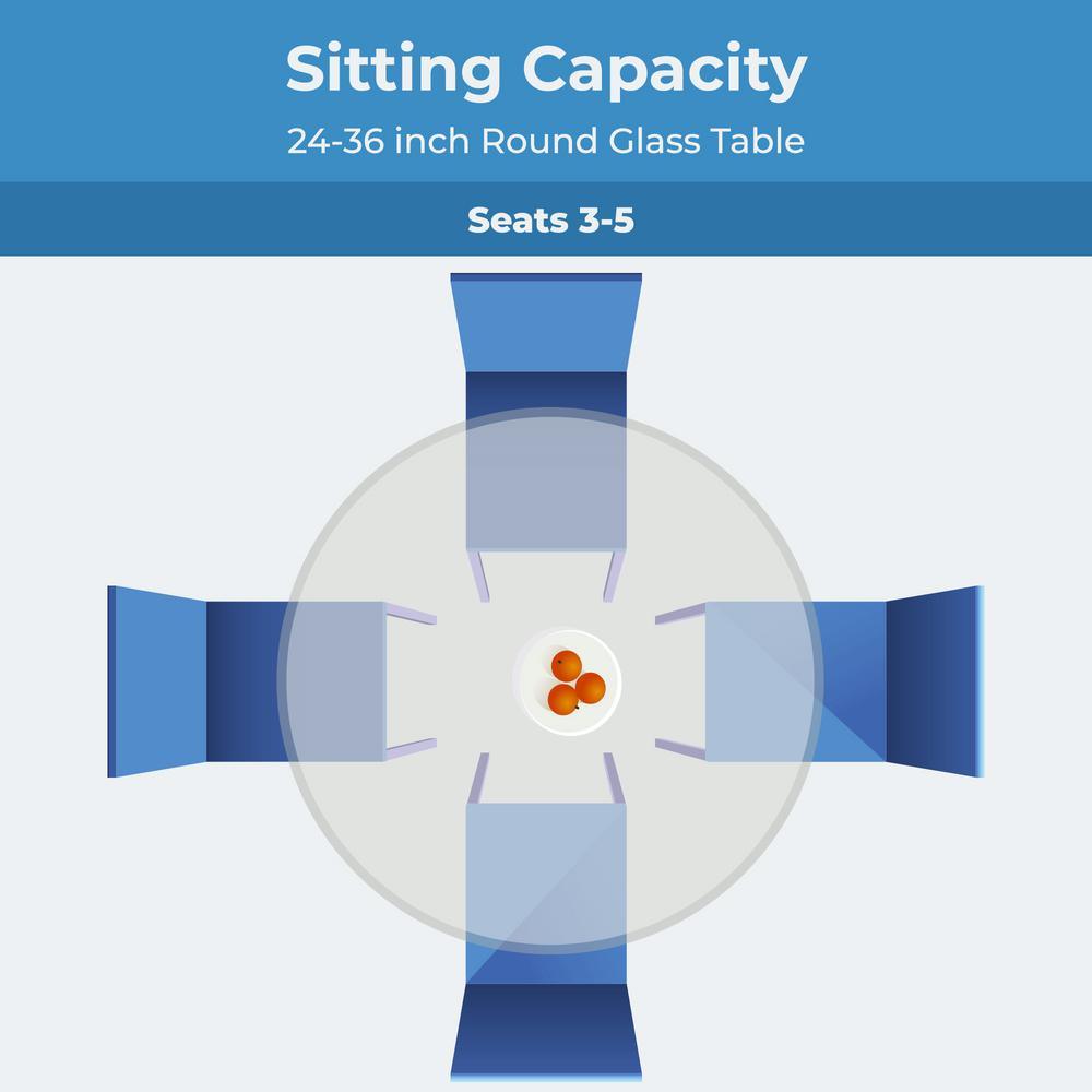 Available sizes: from 12 in. up to 72 in. round glass table top
