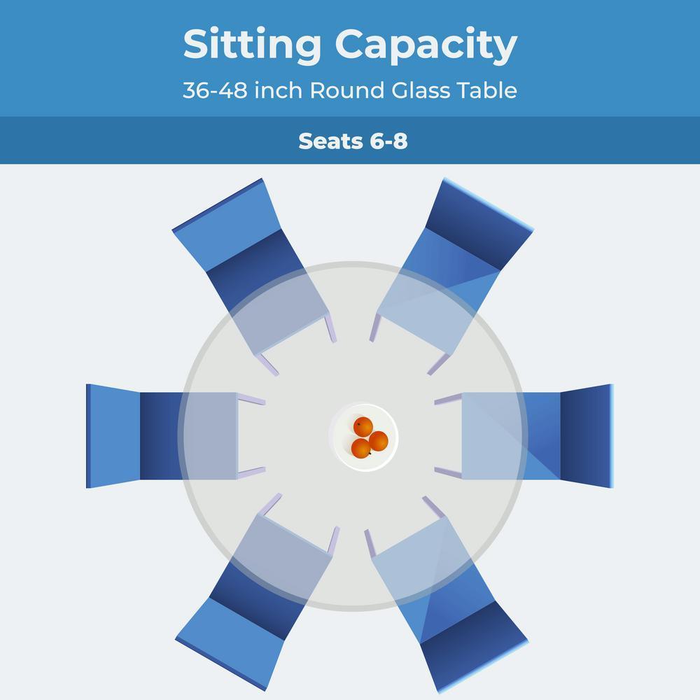 • Available sizes: from 12 in. up to 72 in. round glass table top
